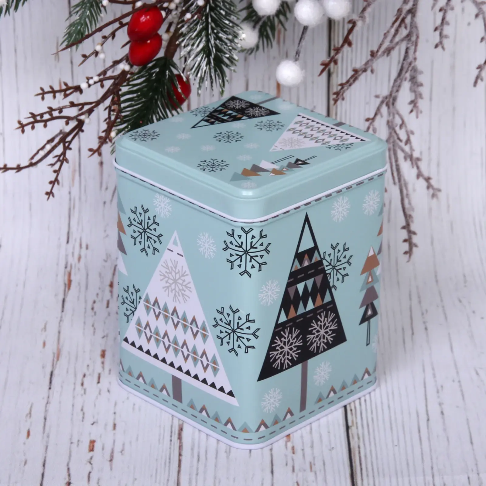 Почему стоит выбрать именно эту банку? Во-первых, она выполнена из качественной жести, что обеспечивает её прочность и долговечность. Во-вторых, уникальный дизайн с зимними мотивами делает её не только функциональным, но и стильным аксессуаром для вашего дома. В-третьих, такая банка станет отличным дополнением к новогоднему декору и создаст атмосферу праздника.