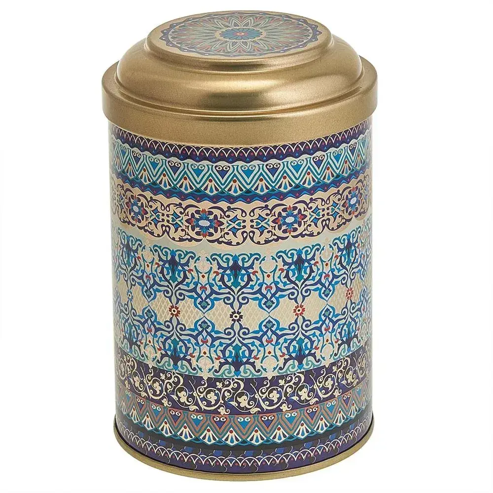 Эта металлическая банка с изысканным орнаментом станет практичным и декоративным элементом вашей кухни или дома. Благодаря качественной металлической конструкции и яркому дизайну, она идеально подходит для хранения сыпучих продуктов, таких как сахар, чай или специи, а также для сувенирных целей.
