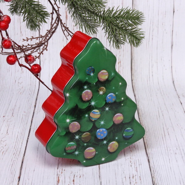 Создайте атмосферу праздника с помощью этой стильной жестяной банки в форме ёлки. Она станет отличным решением для упаковки сладостей, леденцов или небольших подарков на Новый год. Эта банка не только практична, но и добавит яркие акценты в ваш праздничный декор.