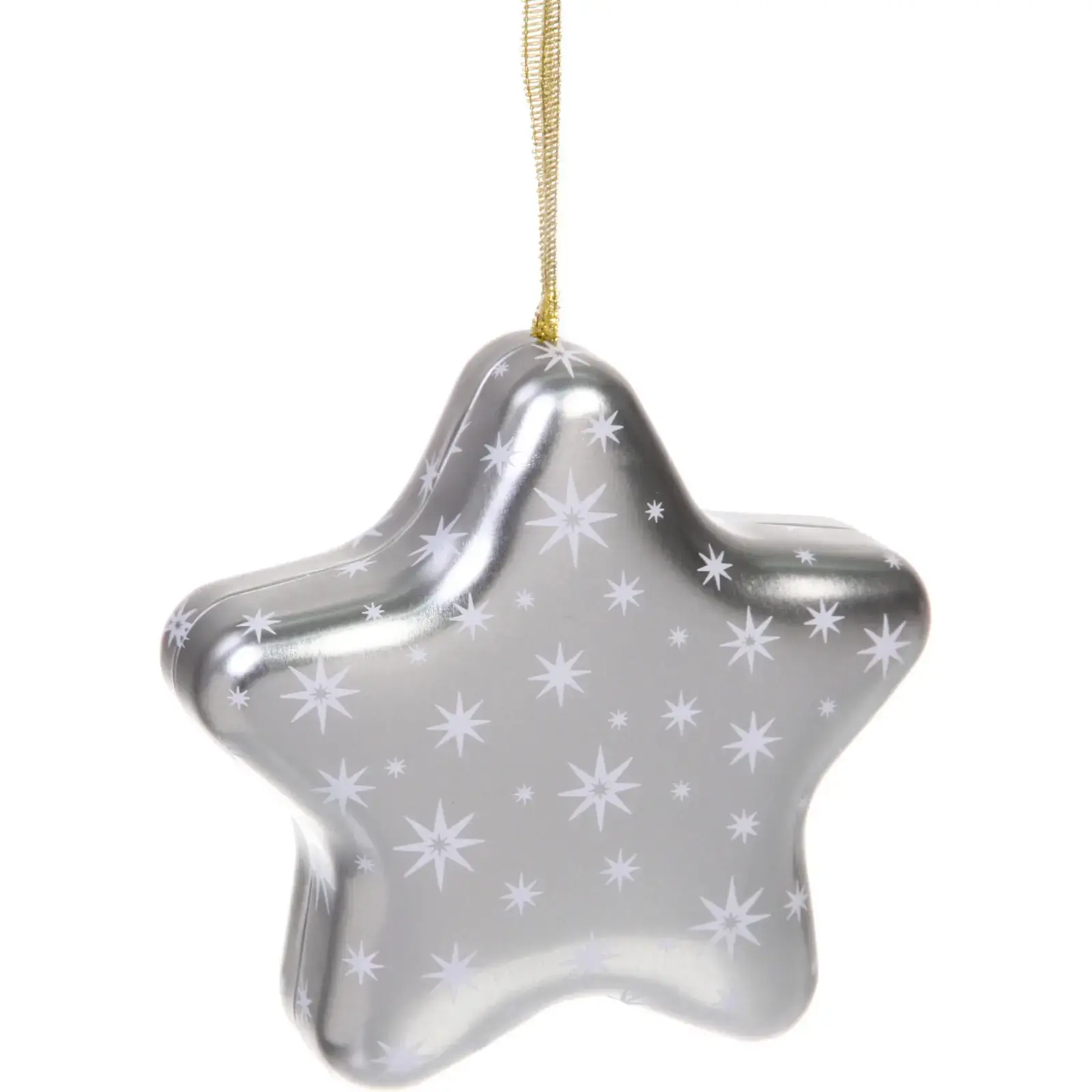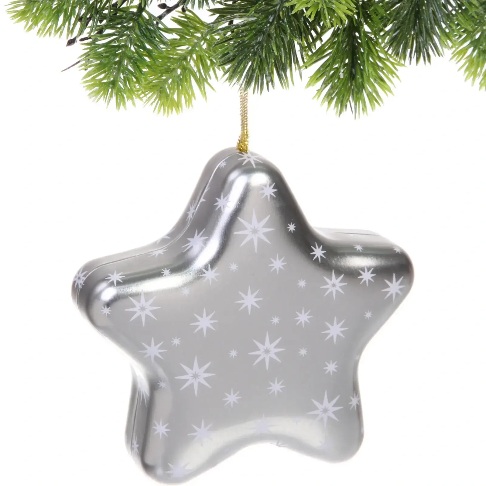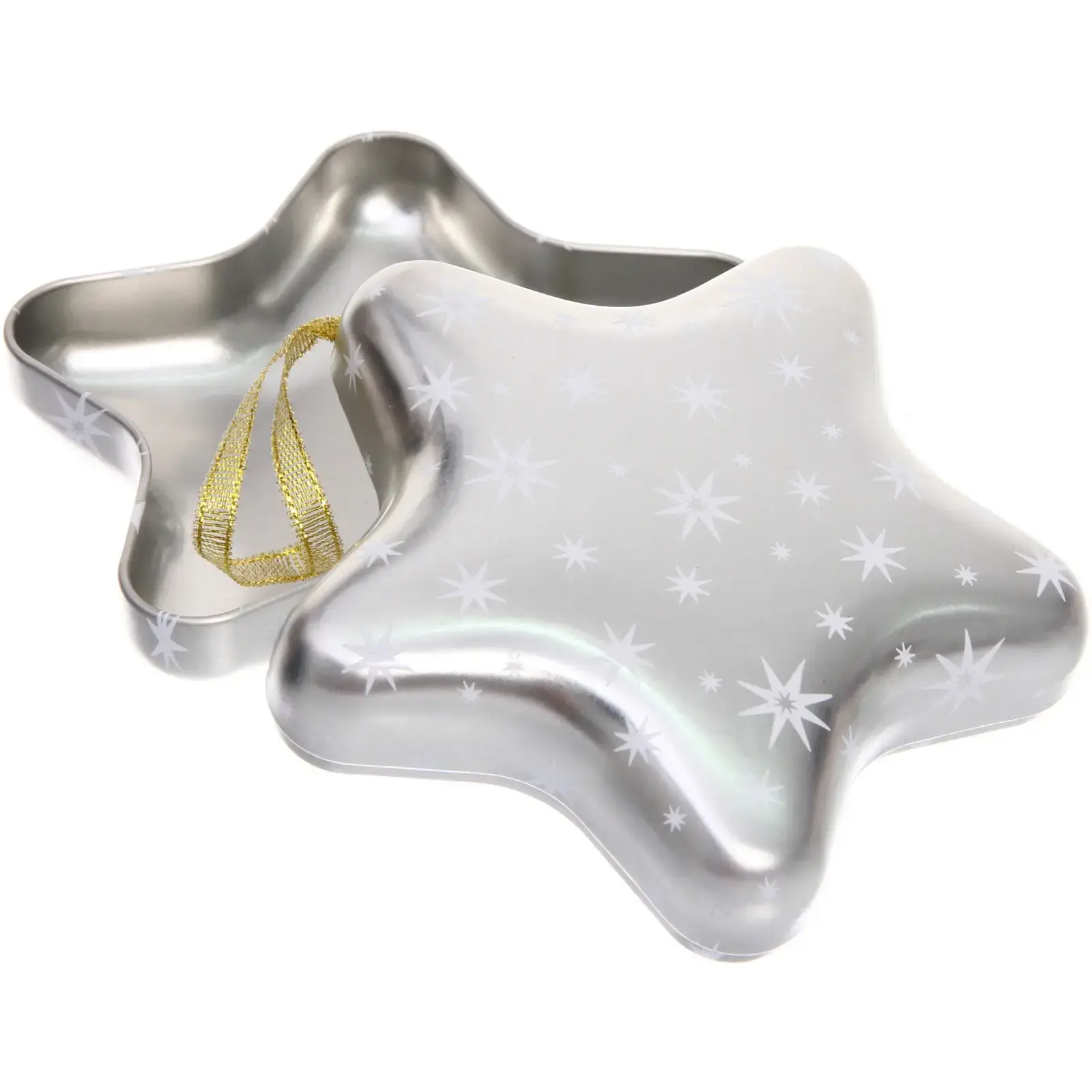 Новогодняя упаковка банка жестяная «Звезда» 12,6*4,8см, серебристая, для подарков и хранения
