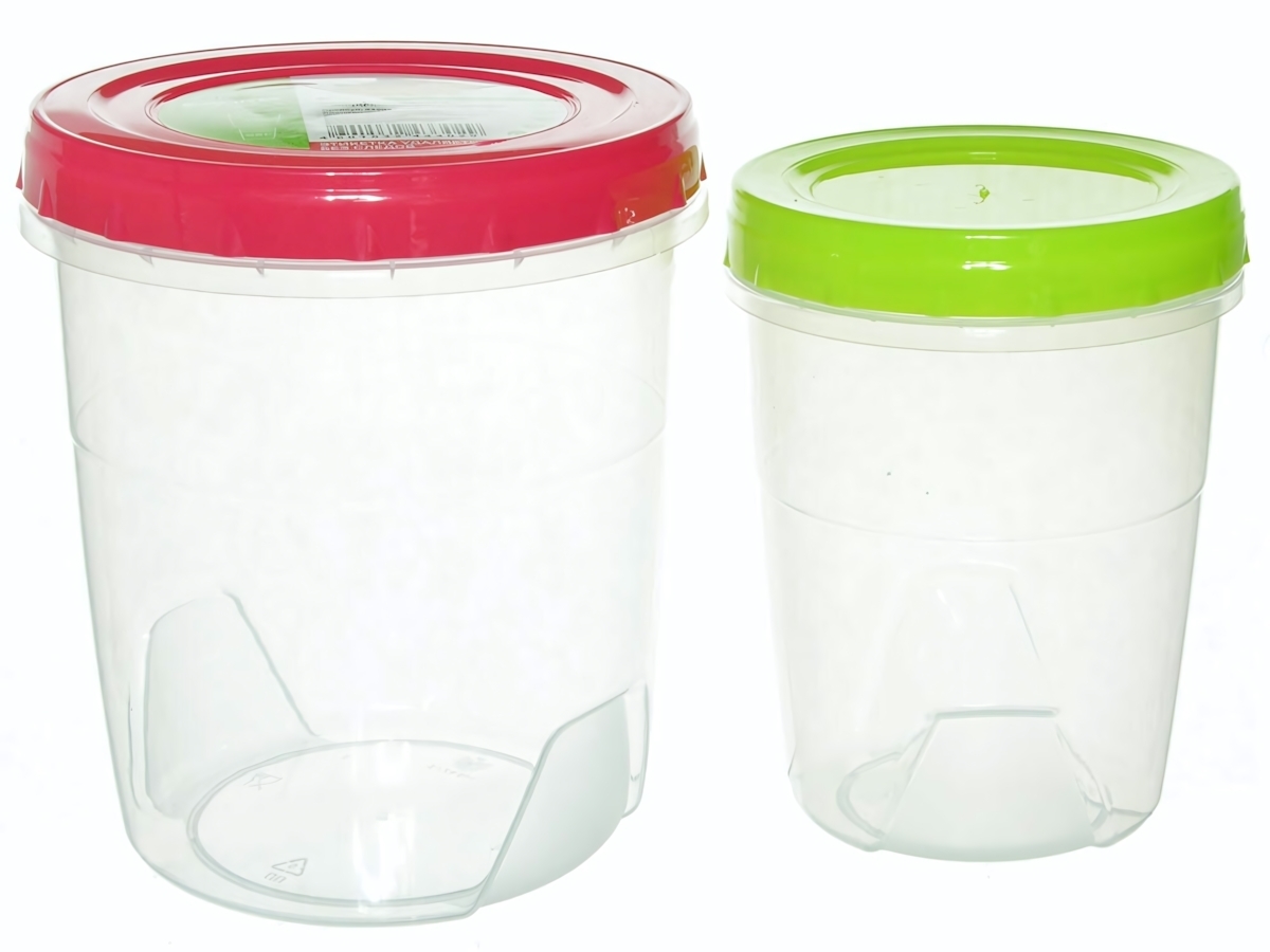 Банки имеют цилиндрическую форму с гладкими стенками и закругленными краями, что обеспечивает удобство при использовании. Прозрачный материал позволяет легко видеть содержимое, а цветные крышки (красная и зеленая) добавляют яркости и стиля на вашу кухню. Размеры: 0,6 л и 1,3 л — это оптимальные объемы для хранения различных продуктов.