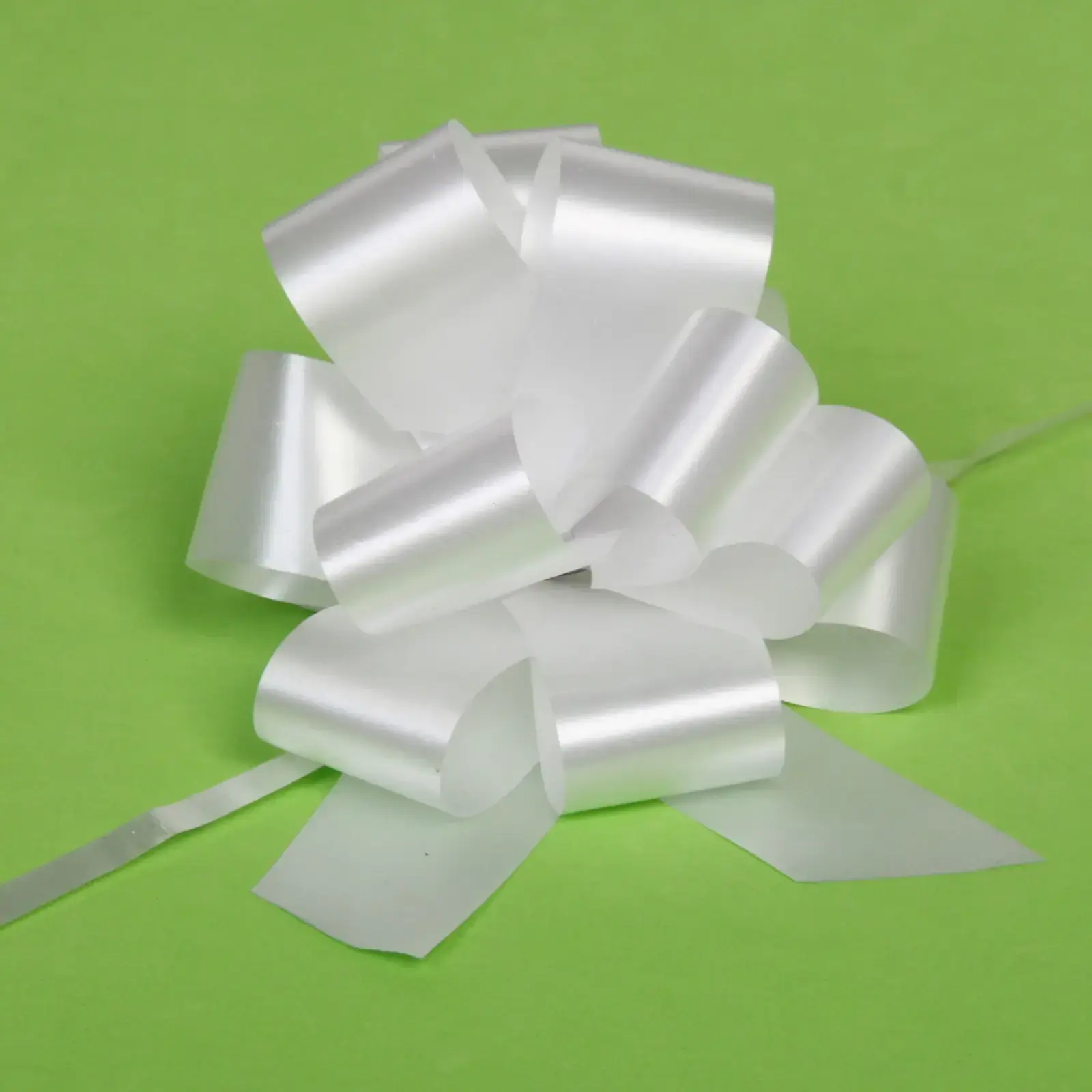 Размер банта составляет 3 см в высоту и 11 см в диаметре, что делает его универсальным для различных подарков. Его белый цвет с перламутровым блеском отлично сочетается с любыми упаковками, добавляя им праздничного настроения. Бант упакован в прозрачную пленку, что позволяет сохранить его в идеальном состоянии до момента использования.