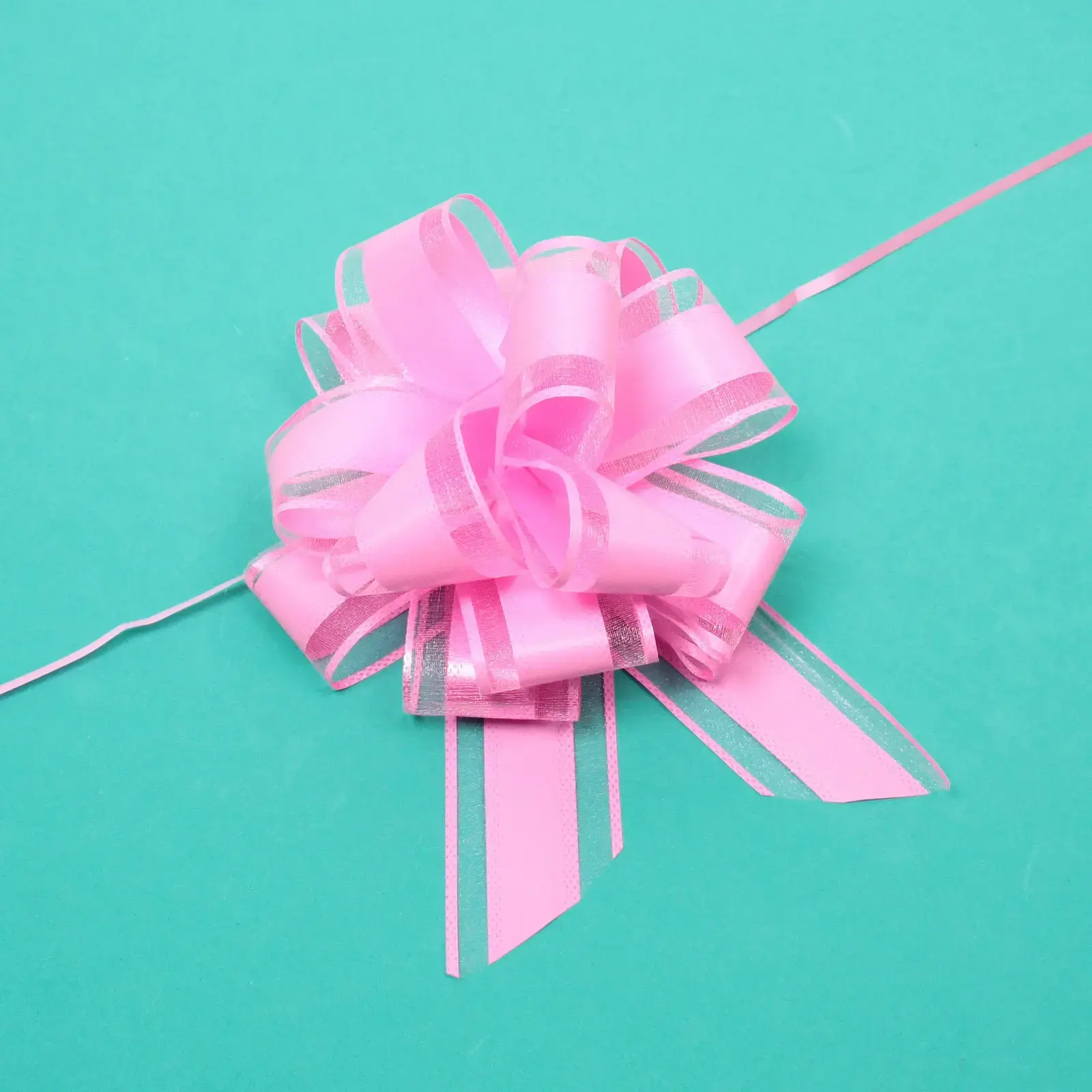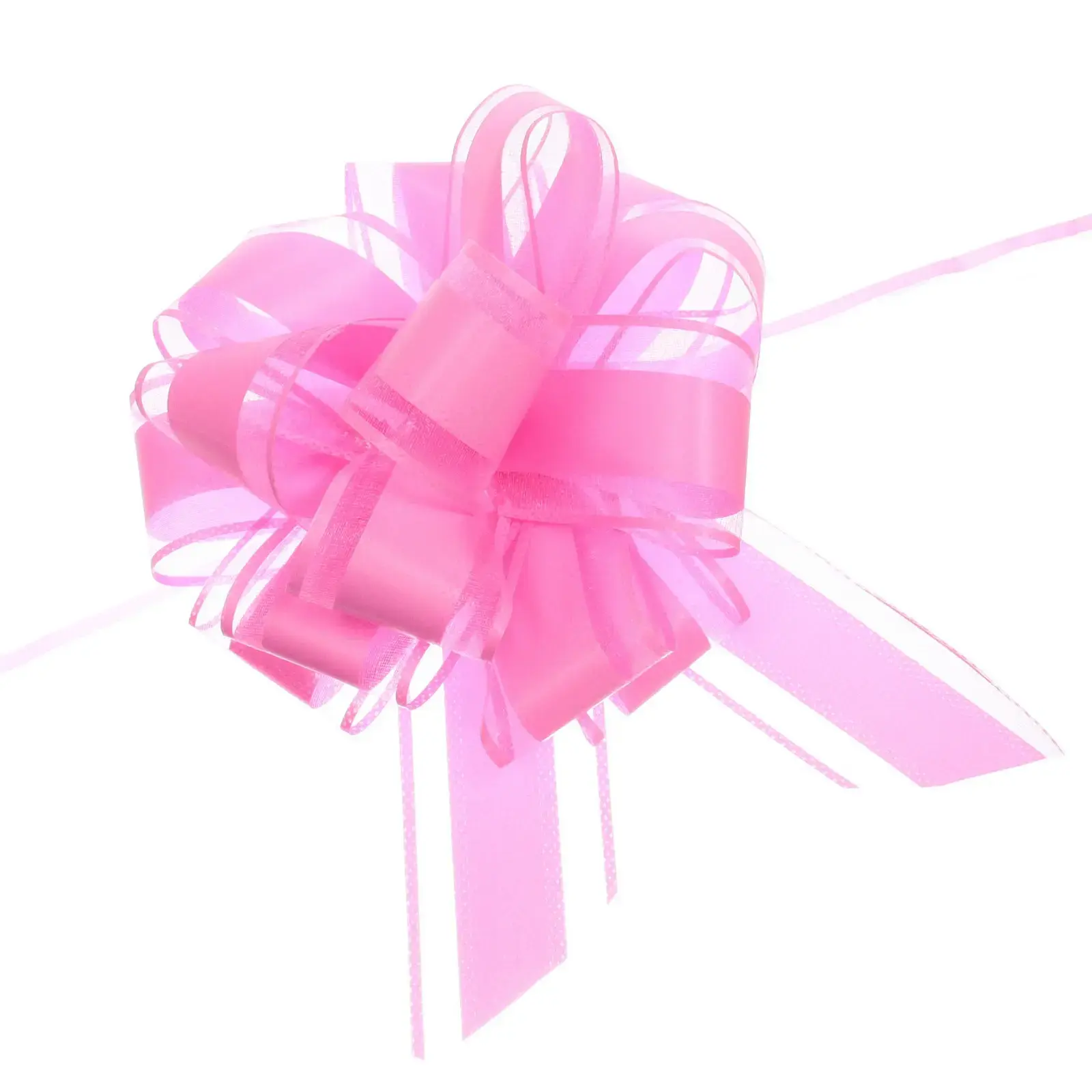 Размер банта составляет 5 см в высоту и 15 см в диаметре, что делает его заметным и эффектным. Розовый цвет с легкими прозрачными полосками добавляет элегантности. Бант легко комбинируется с другими элементами декора, позволяя вам создавать уникальные композиции для любого случая.