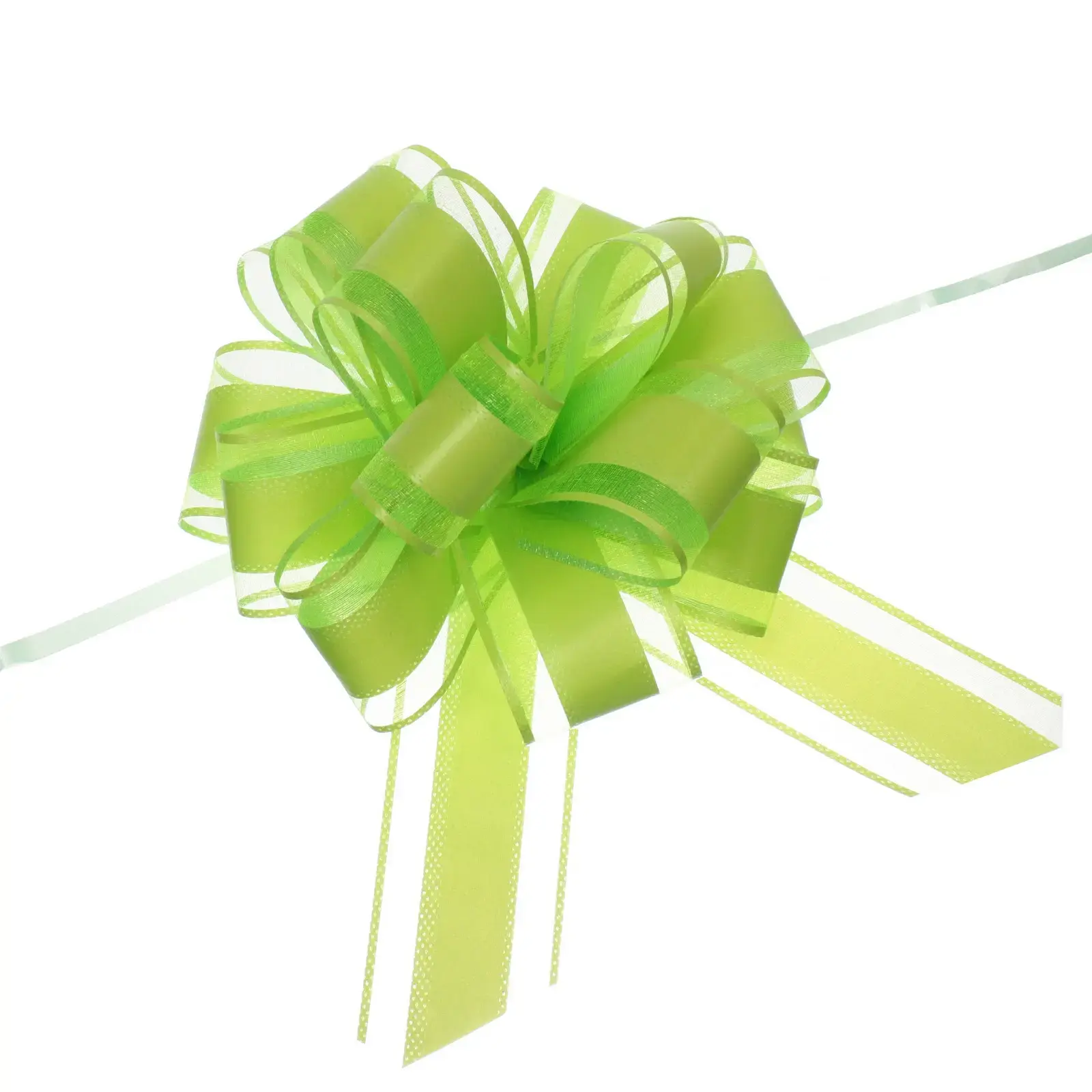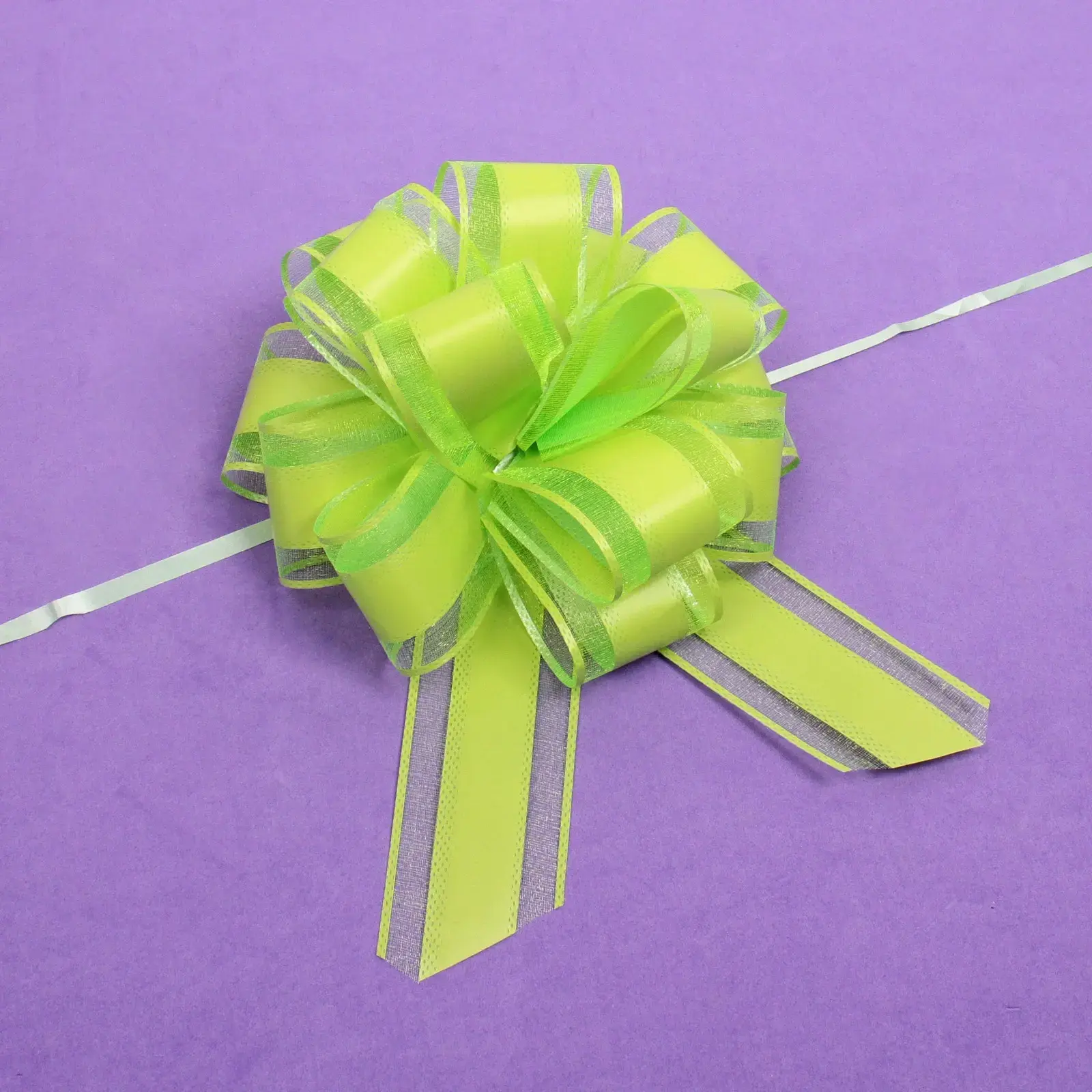 Размер банта составляет 5 см в высоту и 15 см в диаметре, что делает его идеальным для различных упаковок. Ярко-зеленый цвет с блестящей отделкой добавляет яркости и свежести, а также отлично сочетается с другими цветами. Бант подходит для оформления как маленьких, так и больших подарков, благодаря своей универсальности.
