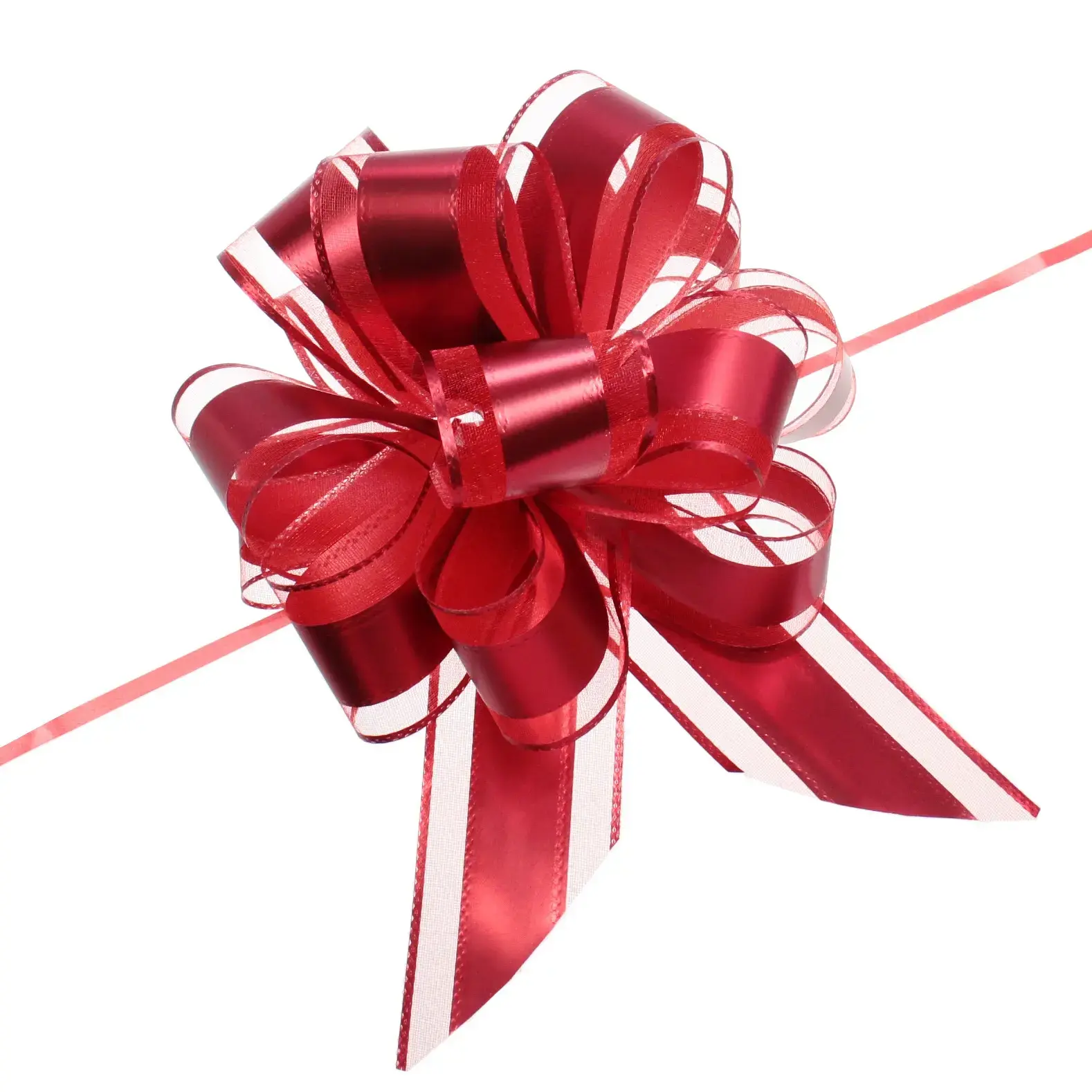 Бант выполнен в ярком красном цвете, который отлично сочетается с любыми упаковками. Его блестящая поверхность добавляет элегантности и стиля. Используйте этот бант для создания уникального подарка, который запомнится надолго. Не упустите возможность сделать ваш подарок по-настоящему особенным!