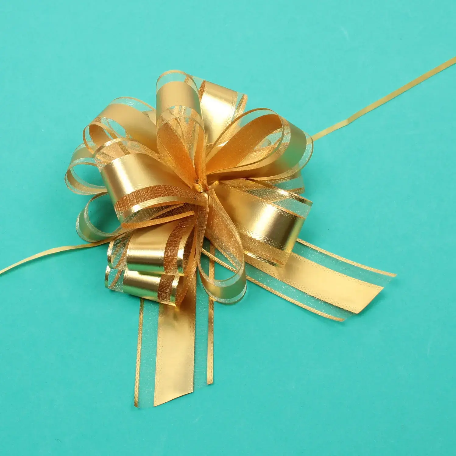 Создайте незабываемый момент с помощью нашего банта для подарка «Изящный подарок». Этот бант не только добавит изысканности вашему подарку, но и станет ярким акцентом на любом праздничном мероприятии. Его золотистый цвет с металлическим блеском привлекает внимание и создает атмосферу торжества.
