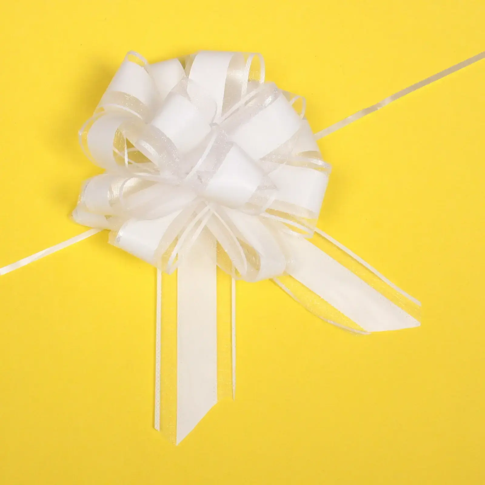 Бант легко крепится к упаковке и подходит для различных типов подарков. Он станет отличным дополнением к вашему оформлению, придавая ему завершенный вид. Благодаря универсальному белому цвету, он гармонично впишется в любую цветовую гамму упаковки.