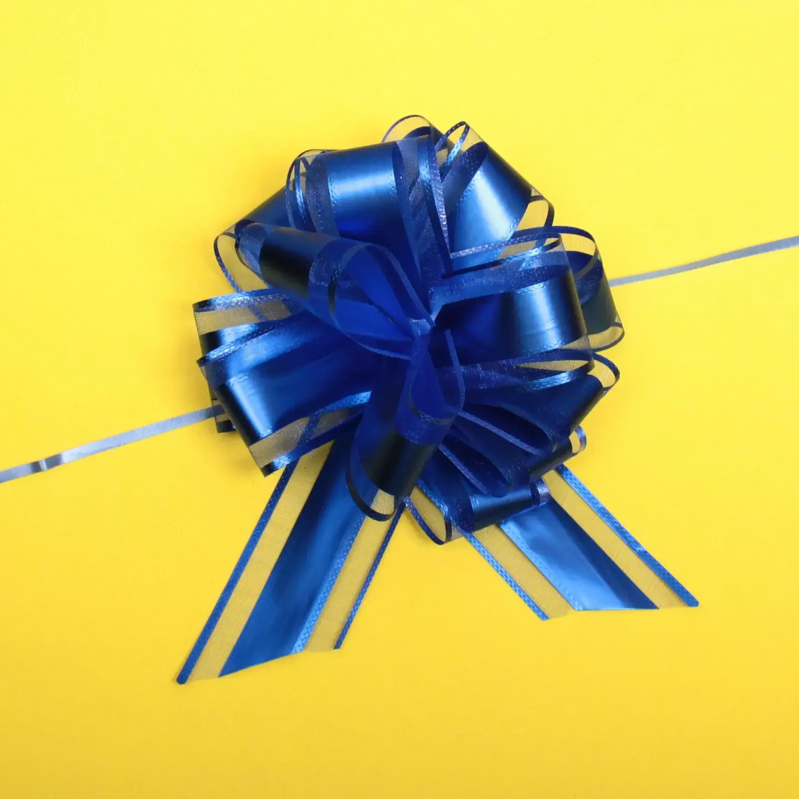 Создайте незабываемый момент с помощью нашего банта для оформления подарка «Изыск». Этот стильный аксессуар добавит изысканности и яркости любому подарку, делая его по-настоящему особенным. Бант выполнен из блестящей синей ленты, что придаёт ему эффектный вид и делает его идеальным для праздничных мероприятий.