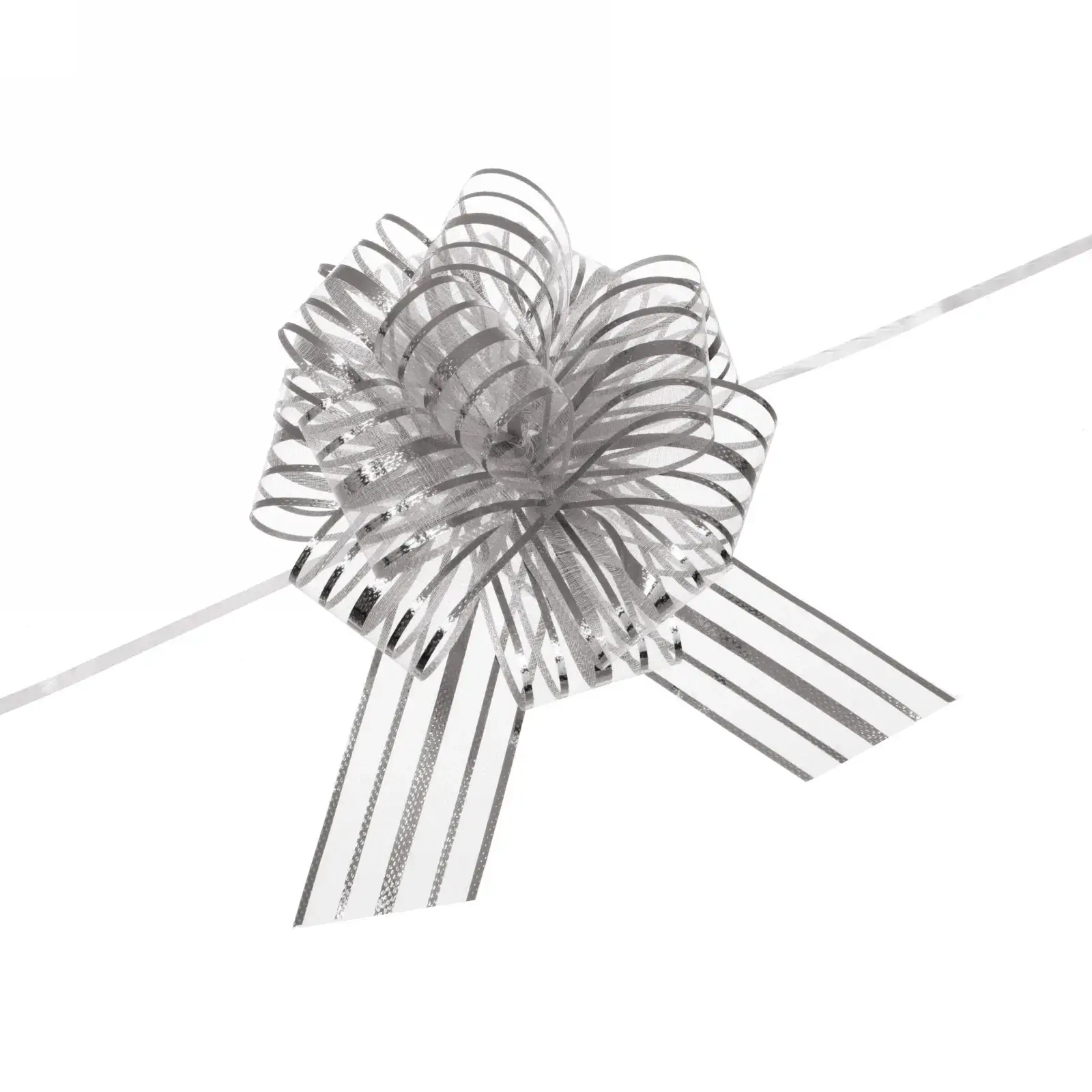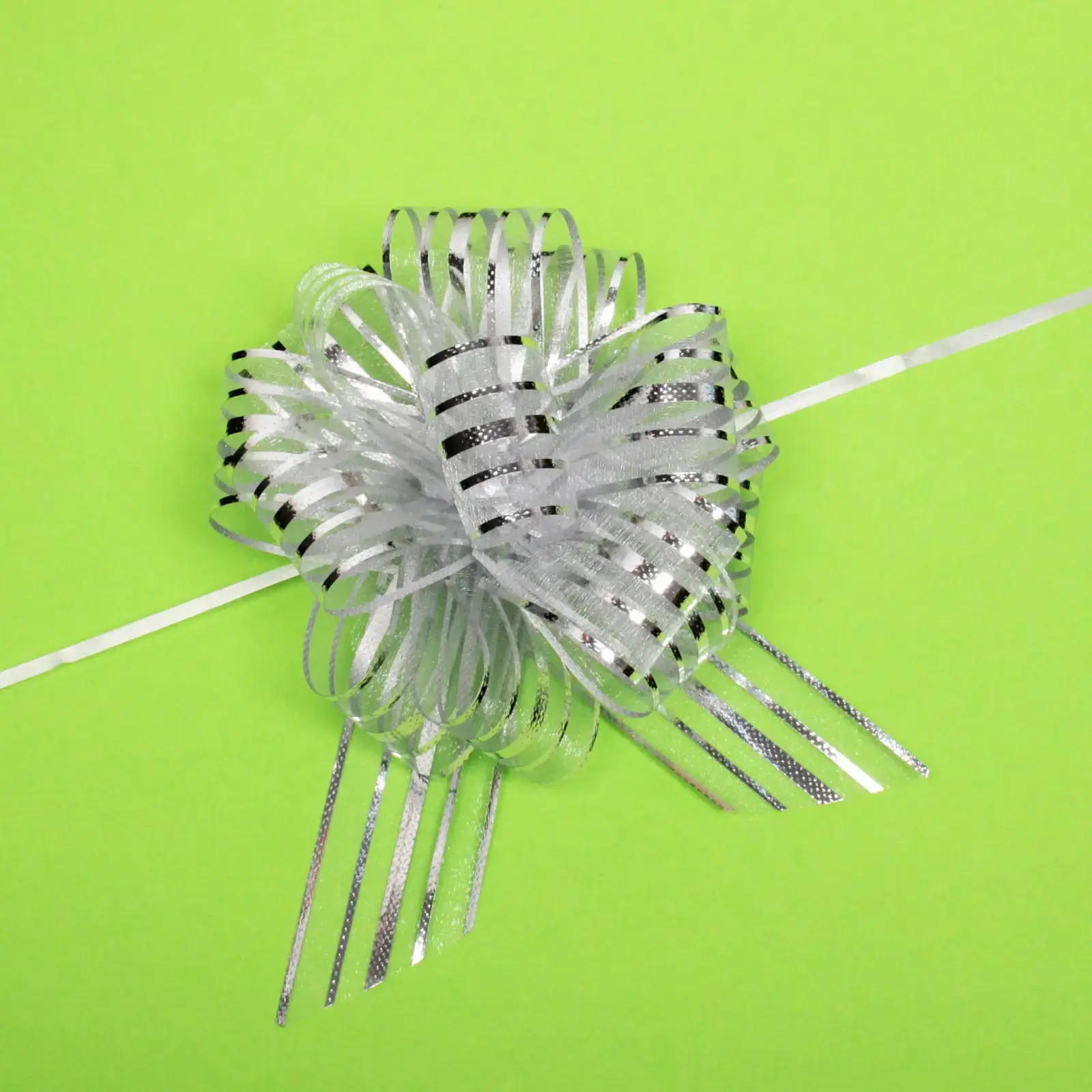 Бант для подарка «Сияние» — это идеальное решение для тех, кто хочет добавить изысканности и стиля в оформление своих подарков. Его блестящая текстура и серебристый цвет создают эффект роскоши, который привлечет внимание и сделает любой подарок особенным.