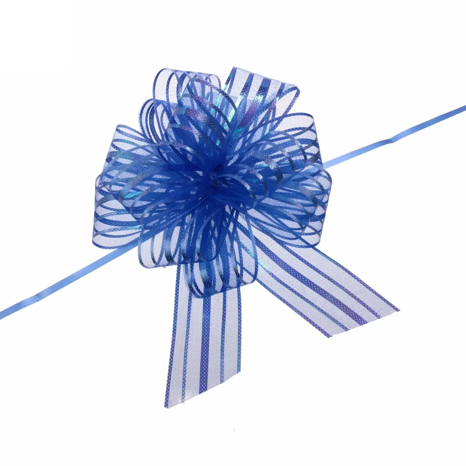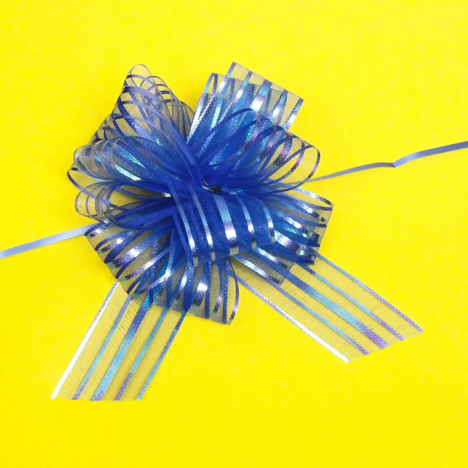 Бант выполнен в синих оттенках с блестящими и прозрачными полосами, что добавляет ему оригинальности. Он состоит из нескольких слоев ленты, которые создают эффектный объем. Длина ленты, идущей от банта, позволяет легко завязать его на подарке, обеспечивая надежное крепление. Этот бант станет не только украшением, но и важным элементом, подчеркивающим вашу заботу о подарке.