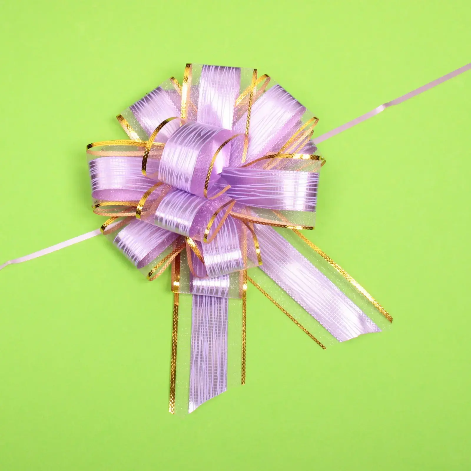 Создайте незабываемый момент с помощью нашего банта для оформления подарка «Сюрприз». Этот стильный аксессуар добавит изысканности и яркости любому подарку, делая его по-настоящему особенным. Бант выполнен из прозрачной пластиковой ленты сиреневого цвета с золотыми полосами, что придаёт ему блестящий и праздничный вид.