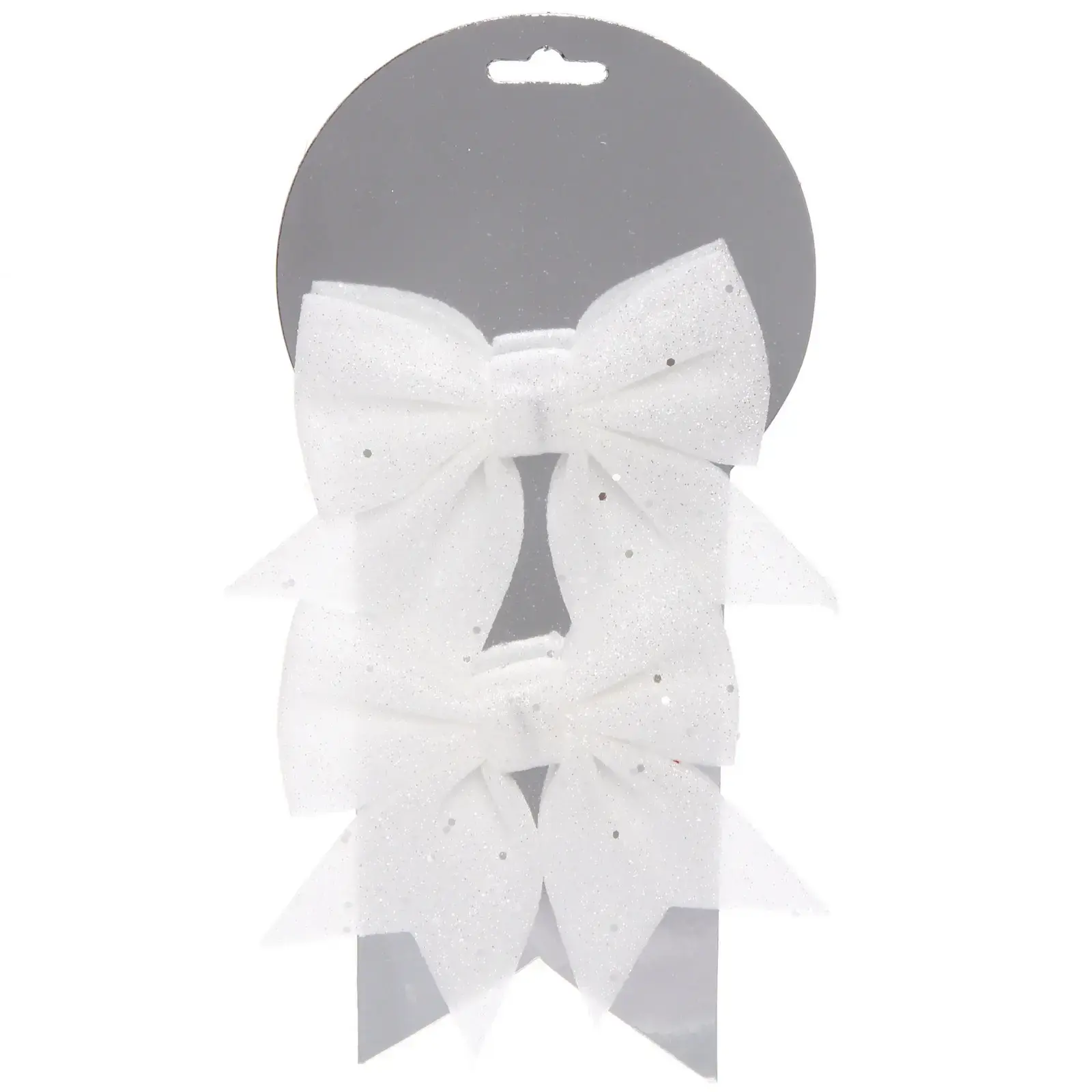 Бант на елку "Нежность", белый, 12*14 см, набор 2 шт, с блестками