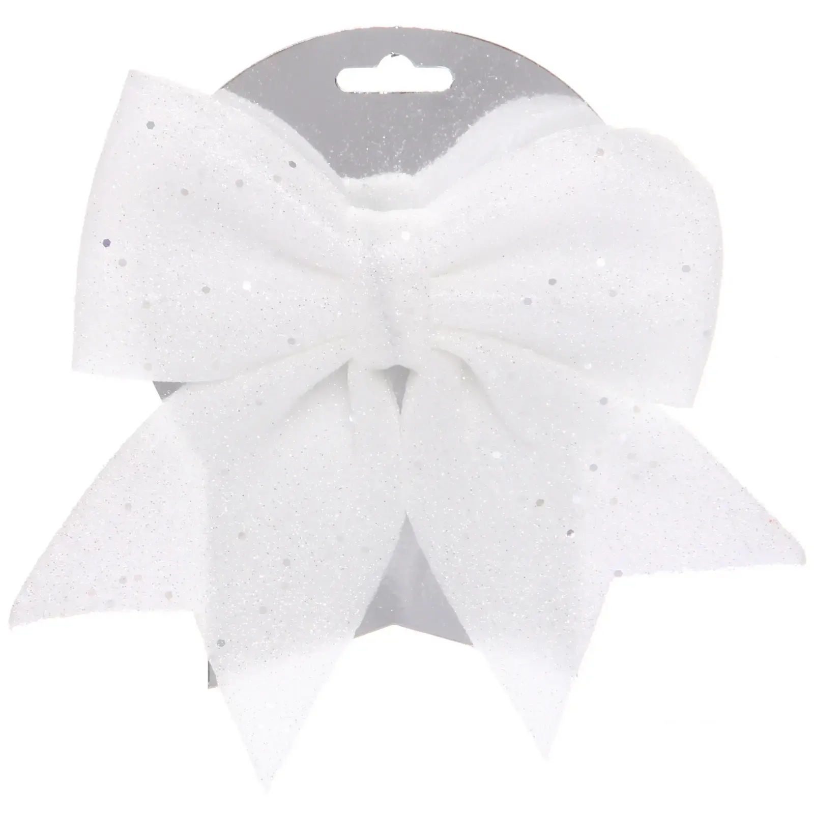 Размер банта составляет 15х20 см, что делает его заметным элементом декора. Белый цвет и блестящая поверхность делают его универсальным для любого стиля оформления. Этот бантик станет отличным дополнением к вашему новогоднему декору и создаст атмосферу праздника в вашем доме.