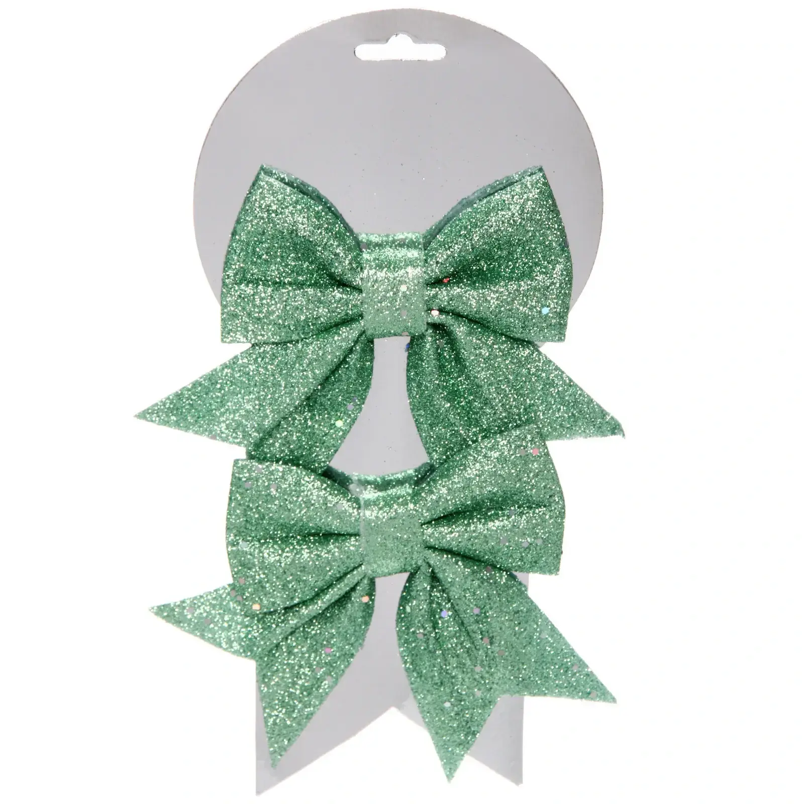 Бант для елки декоративный «Шик», набор 2 шт, 12×14 см, текстиль с блёстками, мятный