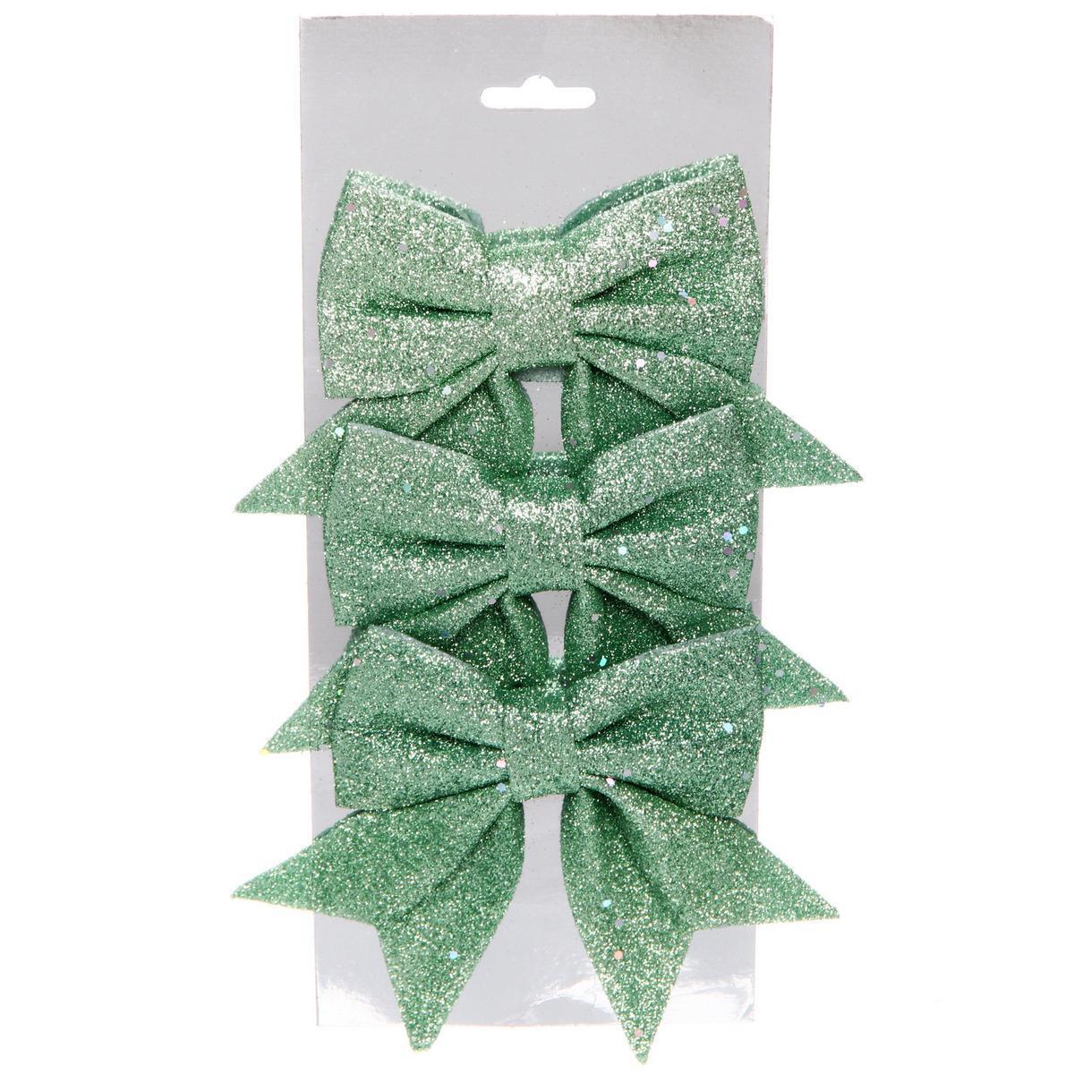Бант новогодний "Шик" 12×14см, мятный глиттер, набор 3 штуки