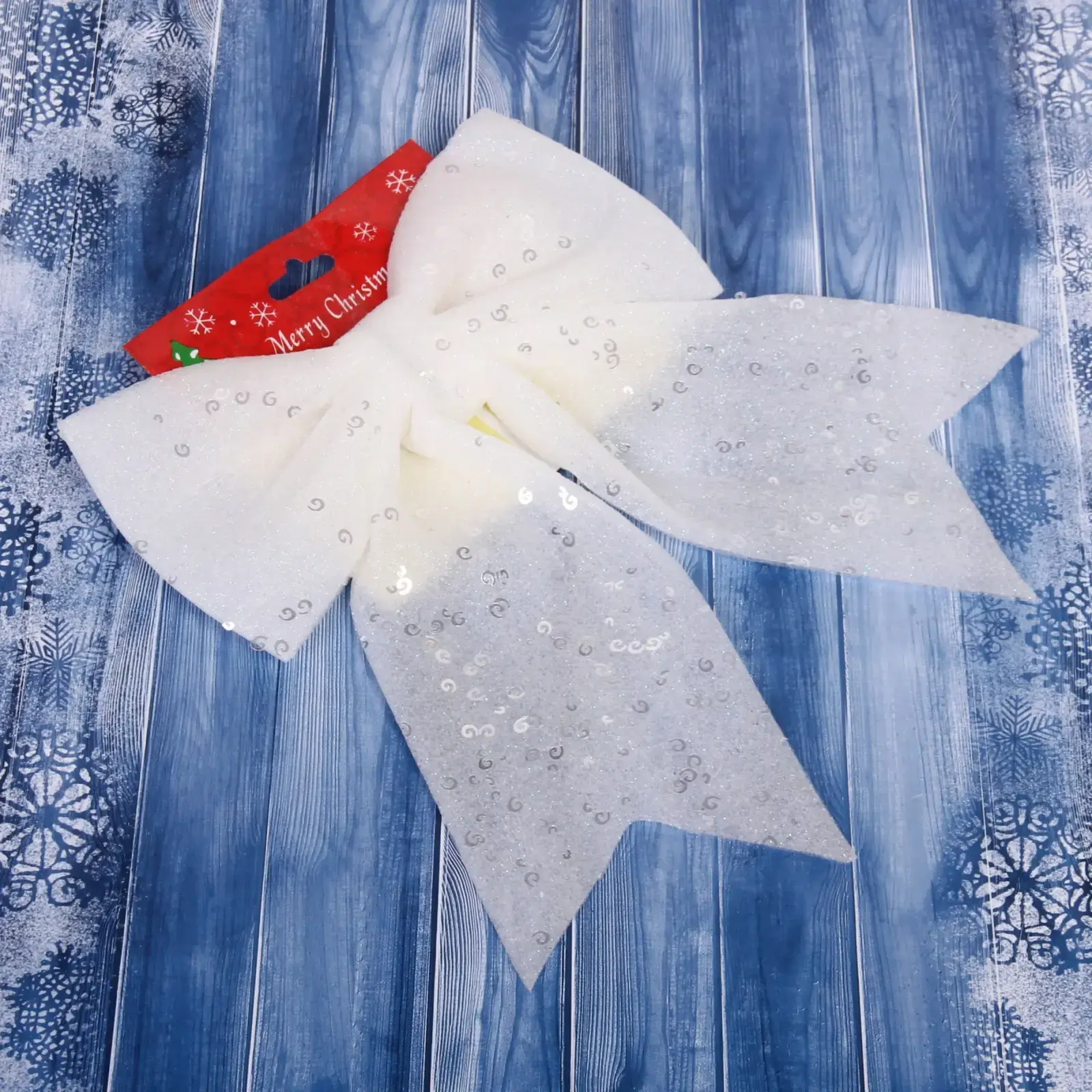 Размер банта составляет 21х22 см, что делает его достаточно крупным для того, чтобы выделяться на ёлке. Белый цвет с блестками создает эффект снега, добавляя зимнего волшебства. Бант поставляется на картонной основе с надписью «Merry Christmas», что делает его отличным подарком или дополнением к вашему новогоднему декору.