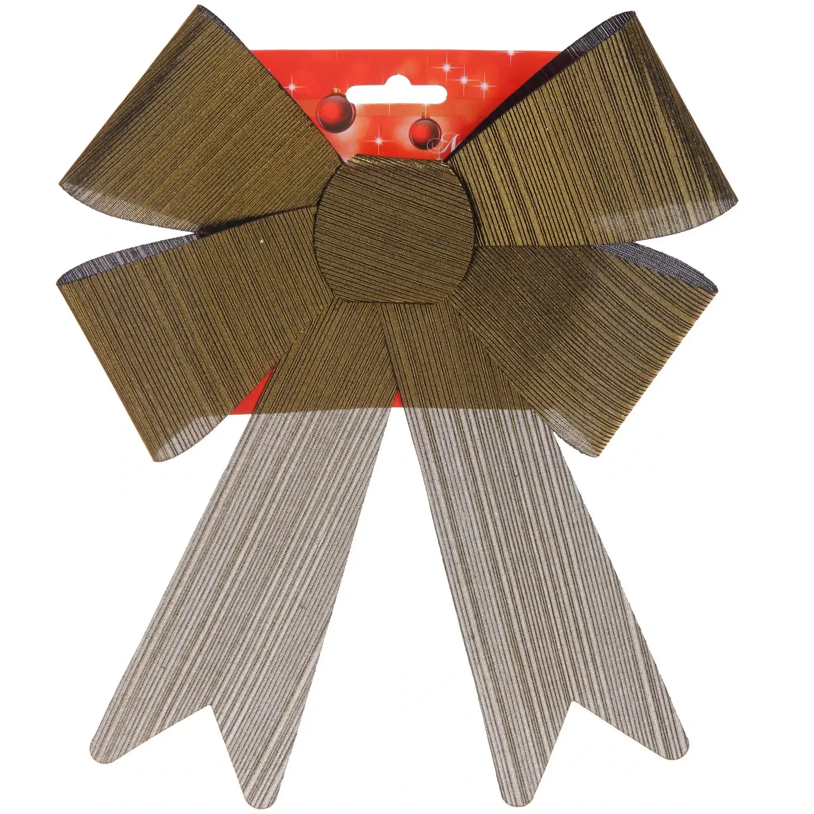 Бант легко крепится к ёлке или другим предметам декора благодаря удобной картонной основе с вырезом для подвешивания. Он подходит для использования как в домашних условиях, так и для оформления мероприятий. С его помощью вы сможете быстро и просто создать праздничное настроение.