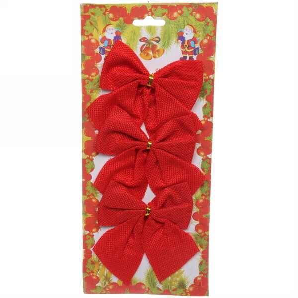Банты легко крепятся на ёлку, а также могут использоваться для декорирования подарков, дверей или других элементов интерьера. Они подойдут для любого стиля оформления, будь то классический или современный. Размер каждого банта составляет 9*10 см, что делает их заметными, но не слишком громоздкими.