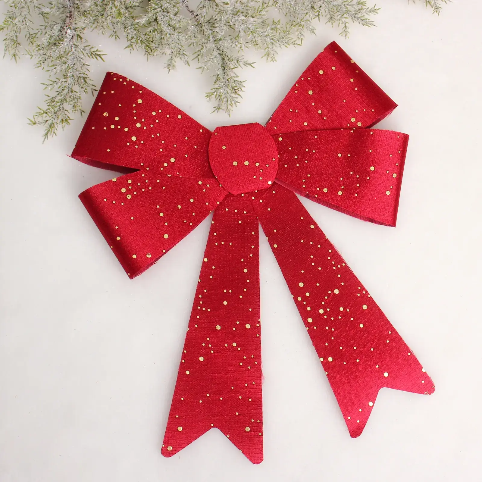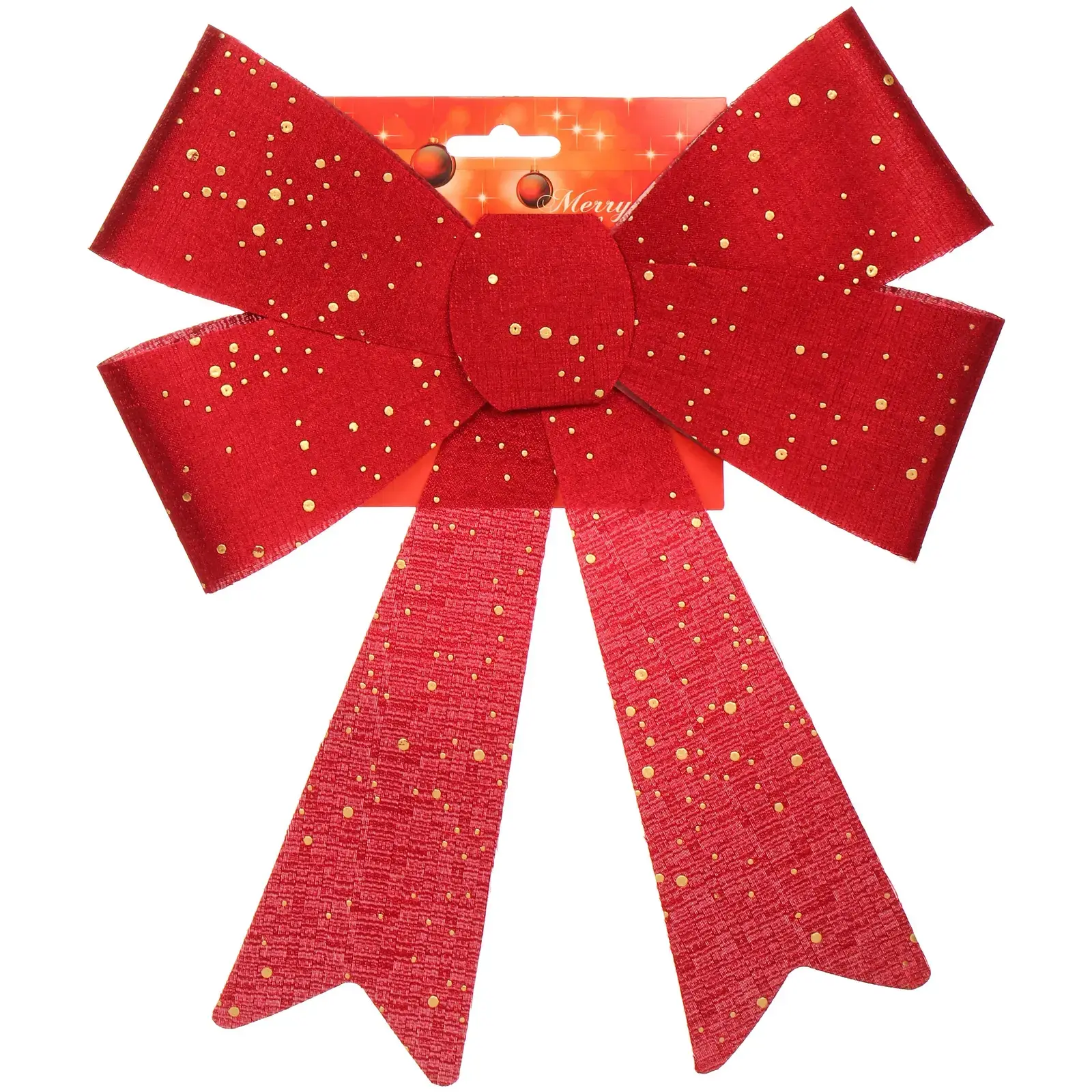 Бант новогодний 'Искристый день' 26*33см, красный с золотом, текстиль