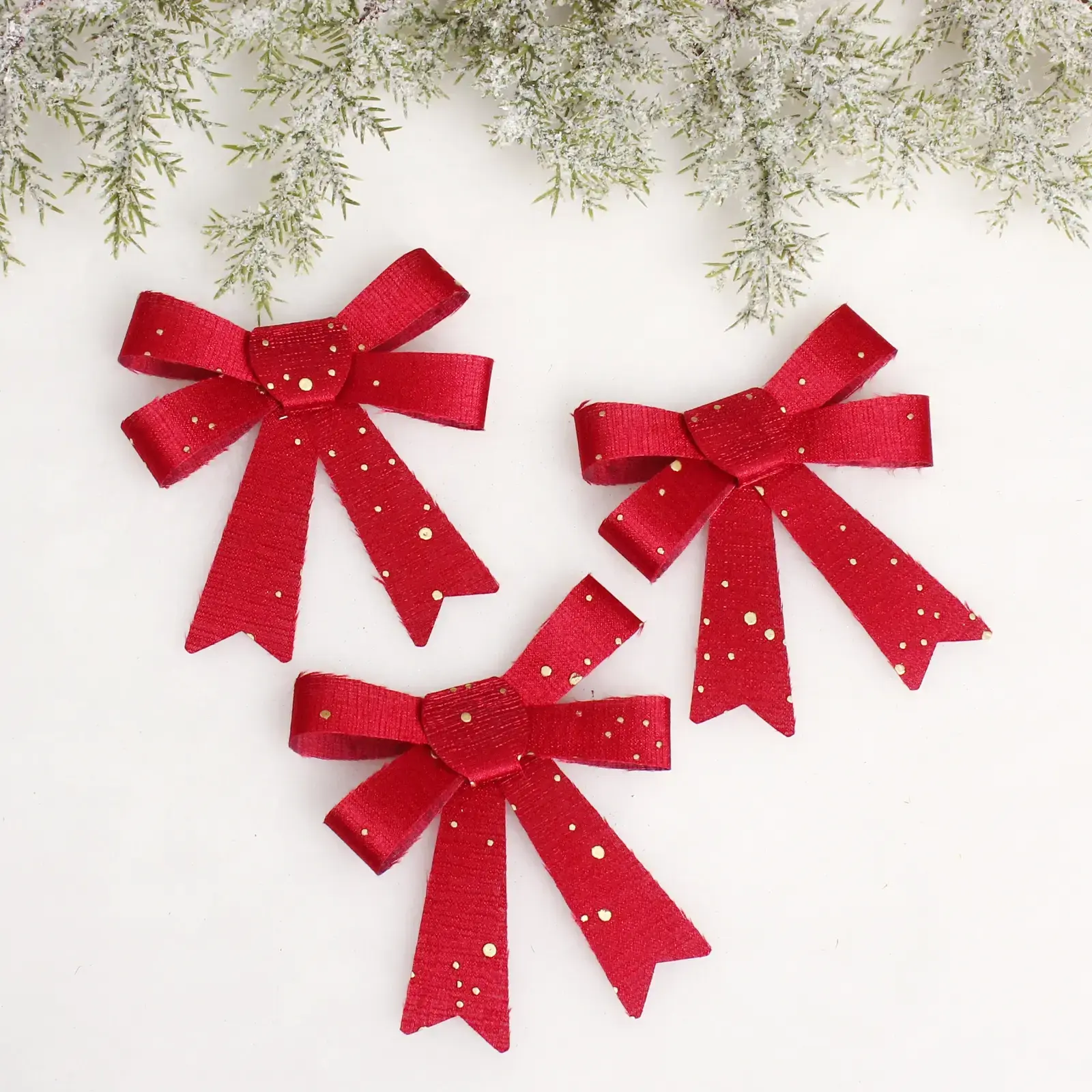 Бант новогодний "Искристый день", набор 3 шт, 9.5х11.5см, красный с золотом