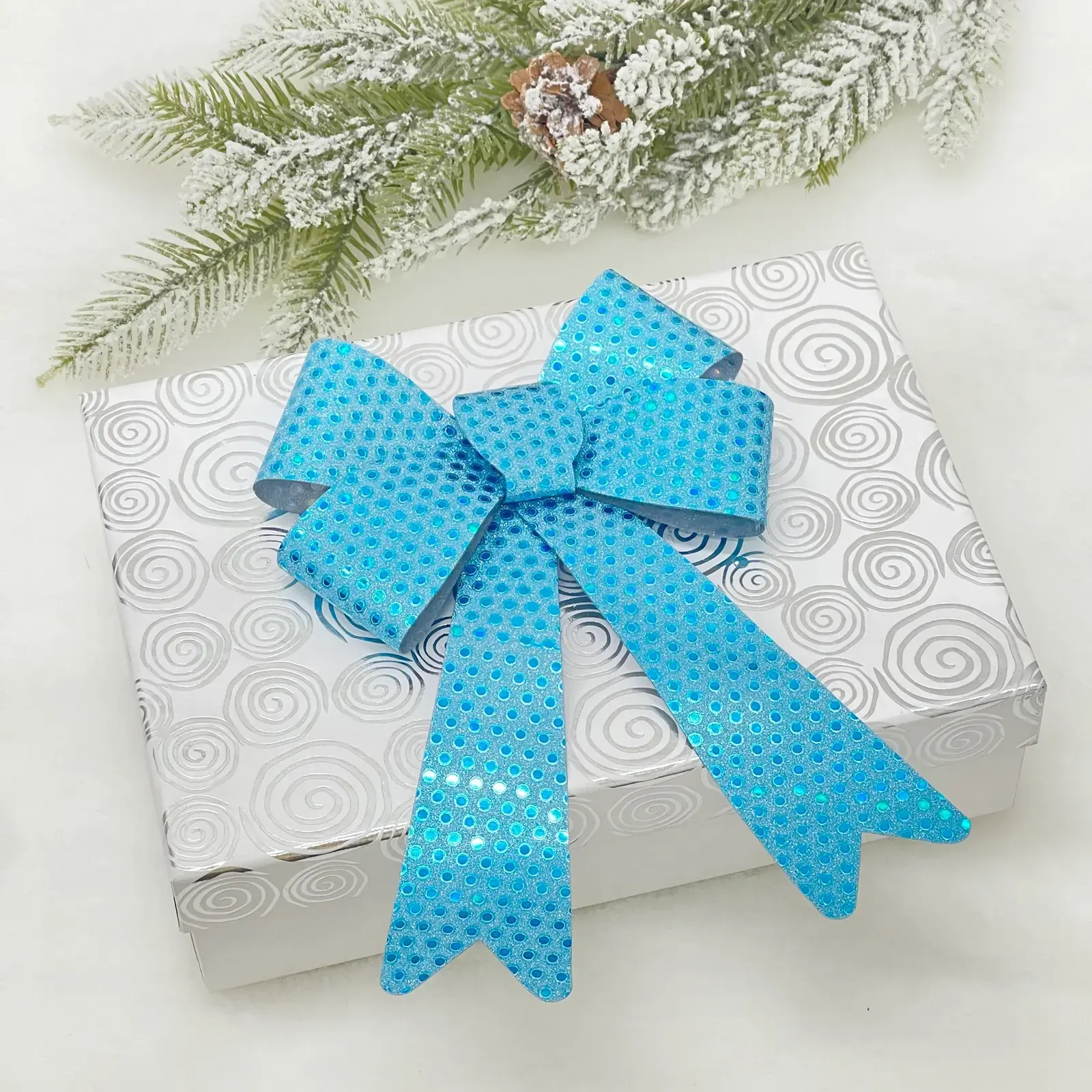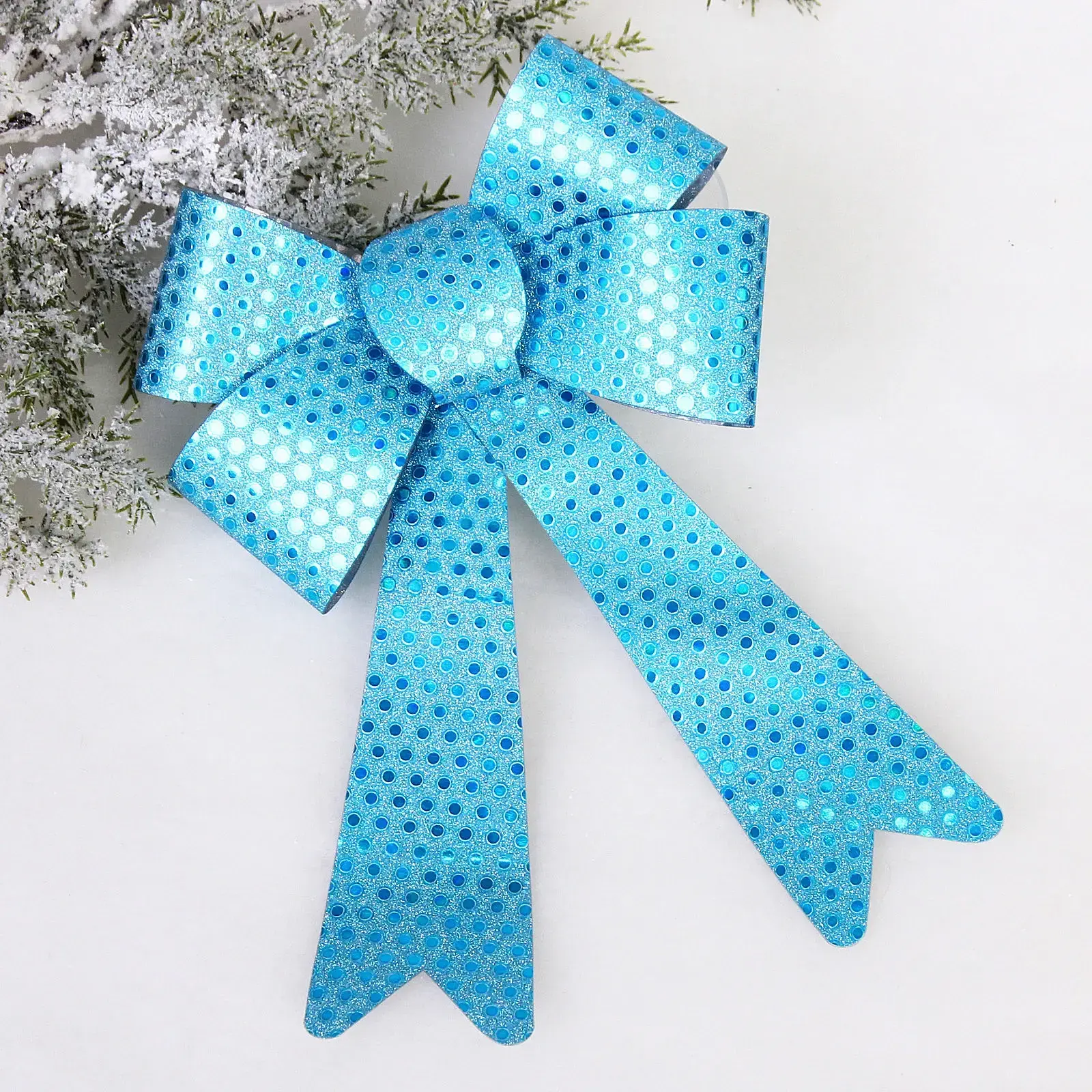 Выбирая бант на ёлку «Искры», вы получаете не только красивый, но и качественный продукт. Блестящая текстура и перфорированный дизайн придают ему уникальность и стиль. Он легко крепится к ёлке или подарку, а его яркий цвет добавляет радости и праздничного настроения.