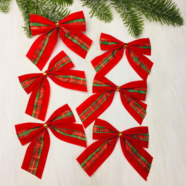 Праздничные банты 'Клетка' станут ярким акцентом в вашем новогоднем декоре. Их насыщенный красный цвет и золотые элементы создают неповторимую атмосферу торжества.