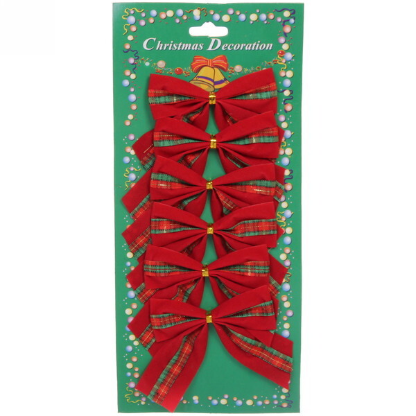 Бант новогодний 'Клетка' 8*8 см, красный/золотой, набор 6 штук