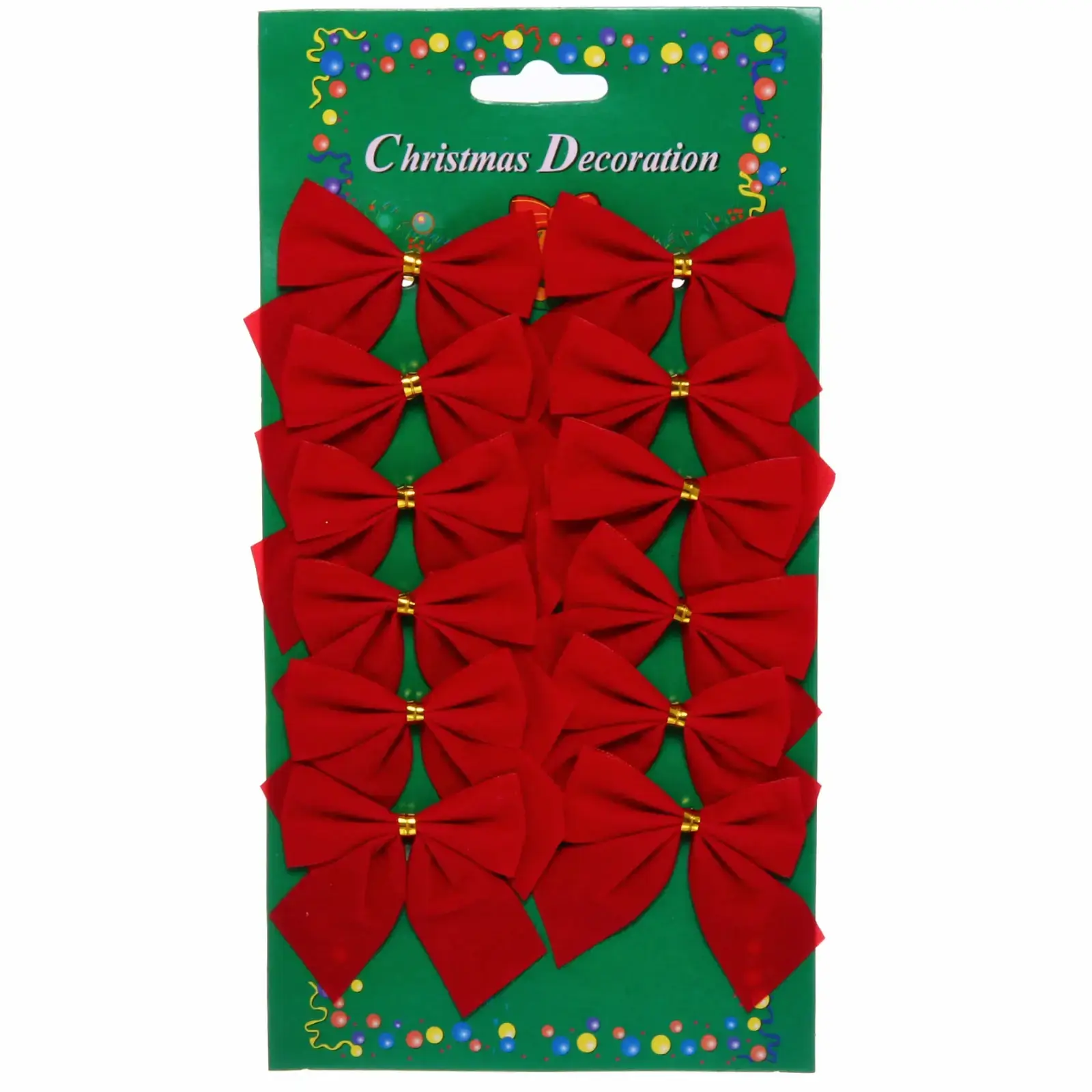 Размер каждого бантика составляет 5 см, что делает их универсальными для различных декоративных решений. Упаковка имеет отверстие для подвешивания, что удобно для демонстрации в магазине или на выставке. Эти бантики станут отличным дополнением к вашему новогоднему декору и подарят радость вам и вашим близким.