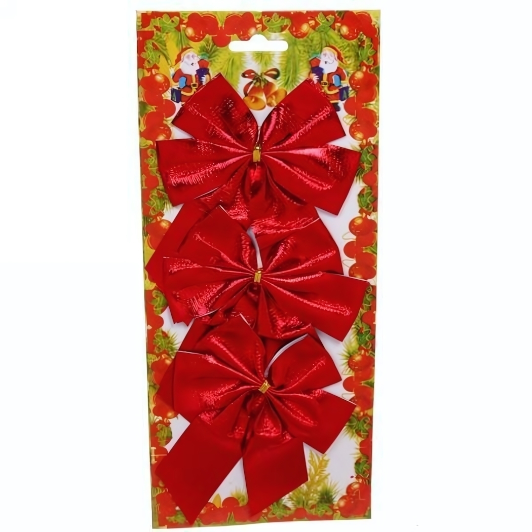 В набор входят три банта: один крупный, один среднего размера и один небольшой, что позволяет использовать их как акцентные элементы или распределить по всей елке. Изготовлены из прочного синтетического материала с блестящей поверхностью.