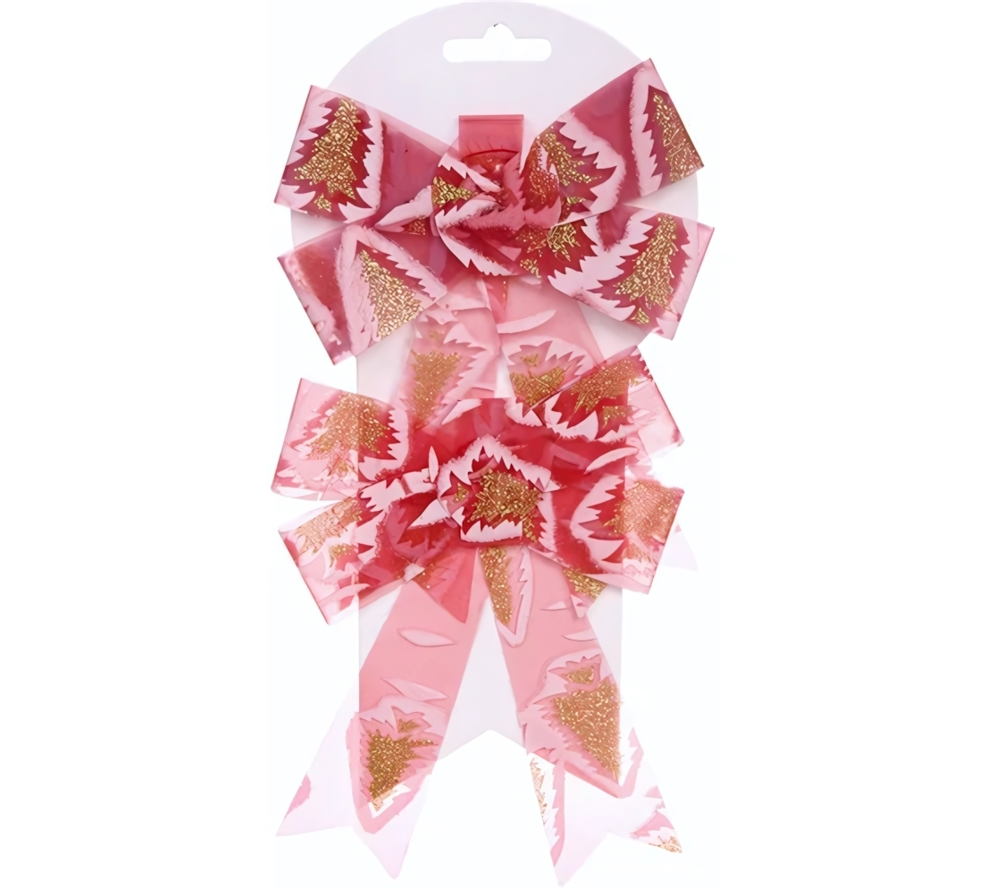 Почему стоит выбрать именно этот бант? Во-первых, он выполнен из качественного ПВХ, что обеспечивает долговечность и устойчивость к повреждениям. Во-вторых, его яркий цвет и оригинальный дизайн с новогодними елками создают праздничное настроение. В-третьих, в наборе вы получаете два банта, что позволяет использовать их в различных комбинациях или для оформления нескольких подарков одновременно.