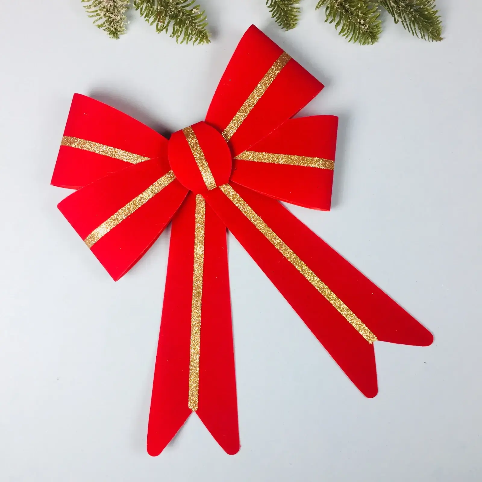 Этот яркий красный бант станет идеальным украшением для вашей ёлки, добавляя ей праздничного настроения и волшебства. Его объемная форма и золотые полоски привлекут внимание и создадут атмосферу уюта и радости в вашем доме. Размер 21х31 см позволяет использовать бантик как в больших, так и в маленьких интерьерах, делая его универсальным элементом декора.