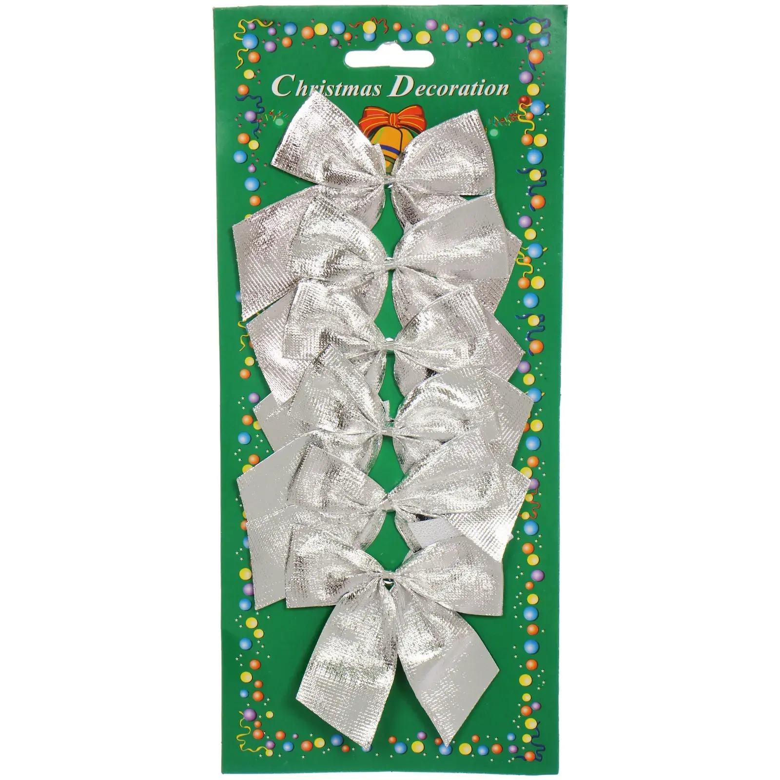 Размер каждого банта составляет 9х7 см, что делает их достаточно заметными, но не слишком громоздкими. В наборе вы получите 6 штук, что позволит вам украсить не только ёлку, но и подарки, стол или другие элементы декора. Праздничный дизайн упаковки с изображениями ёлочных игрушек и новогодних персонажей добавляет дополнительный шарм и создает настроение праздника.