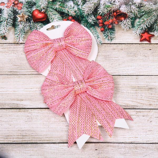 Каждый бант выполнен из прочной синтетической ленты, сохраняющей форму даже при длительном использовании. Набор включает две одинаковые декоративные единицы, что позволяет создавать парные компоновки или использовать их в разных частях помещения. Цвет — светло-розовый с золотистыми акцентами, что добавляет утончённость к праздничной атмосфере.