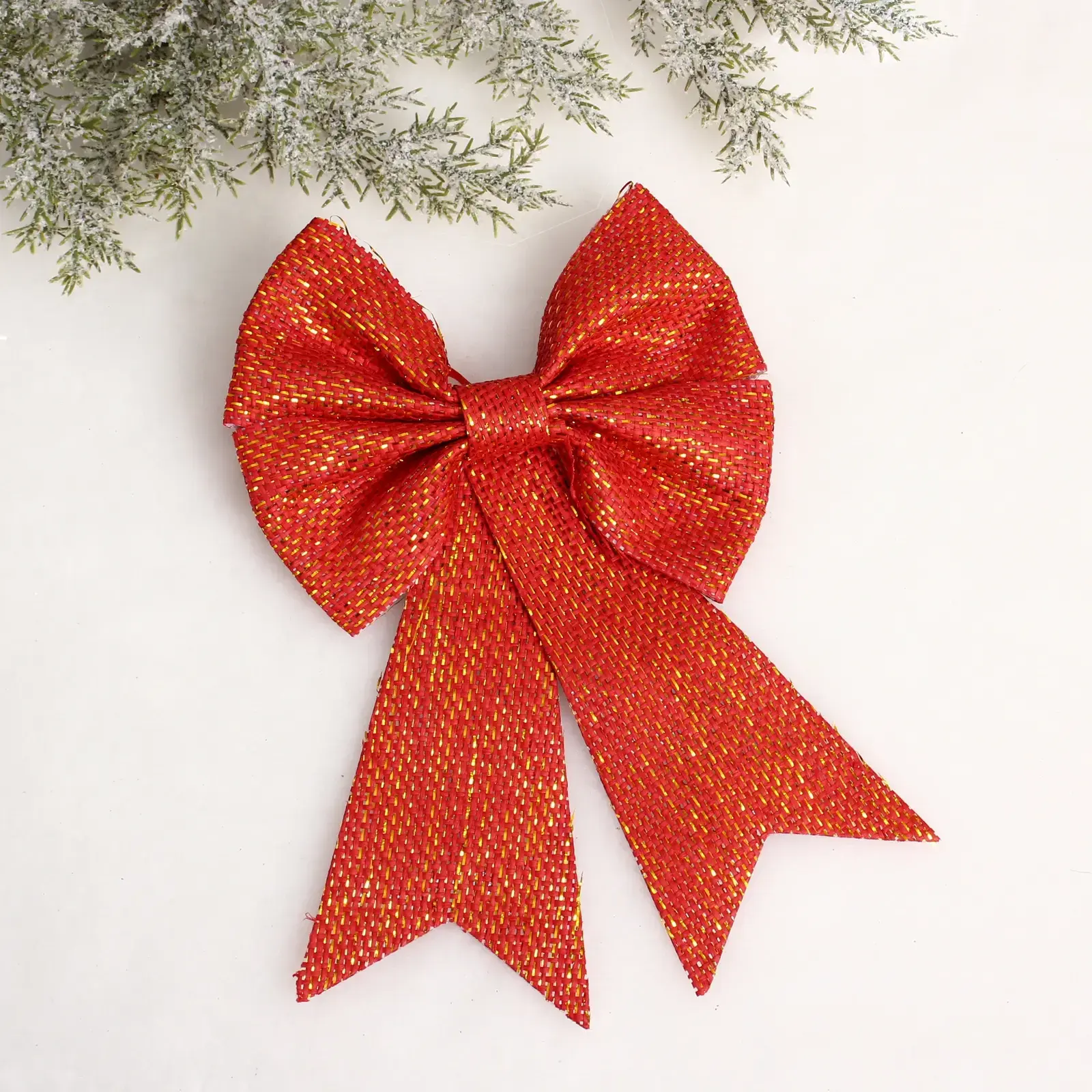 Этот яркий красный бант станет идеальным украшением вашей ёлки. Благодаря блестящей текстуре с золотыми нитями, он добавит волшебного сияния и создаст атмосферу настоящего праздника.