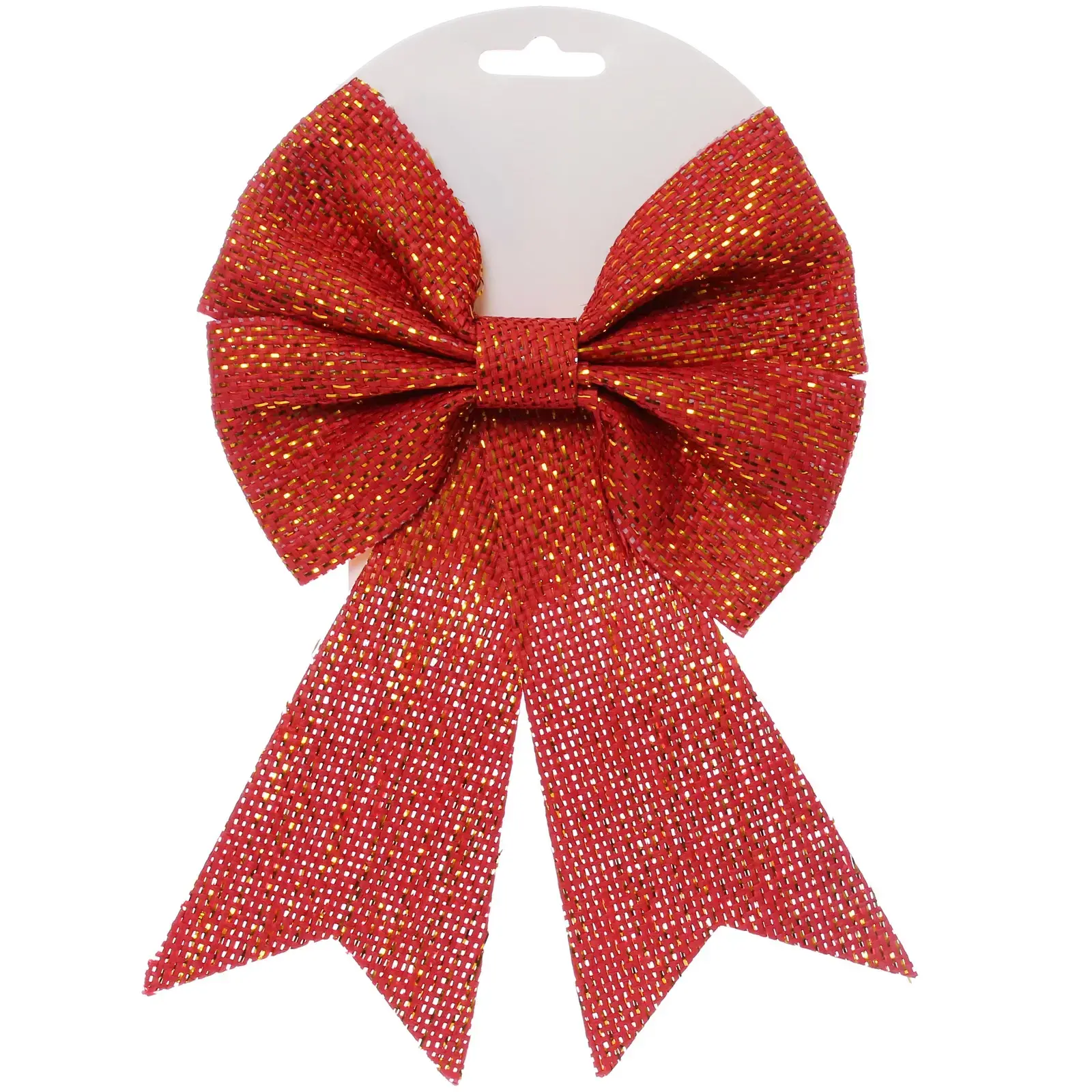 Бант на ёлку «Шик» 16*23 см, красный, блестящий, с золотыми нитями
