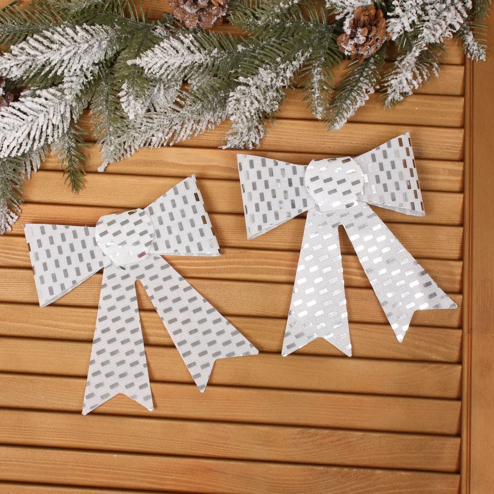 Банты легко крепятся к ёлке или другим предметам декора благодаря специальному отверстию для подвешивания. Они подходят для любого стиля оформления, будь то классический, современный или минималистичный. Эти банты также могут стать отличным дополнением к подаркам, придавая им особый шарм.