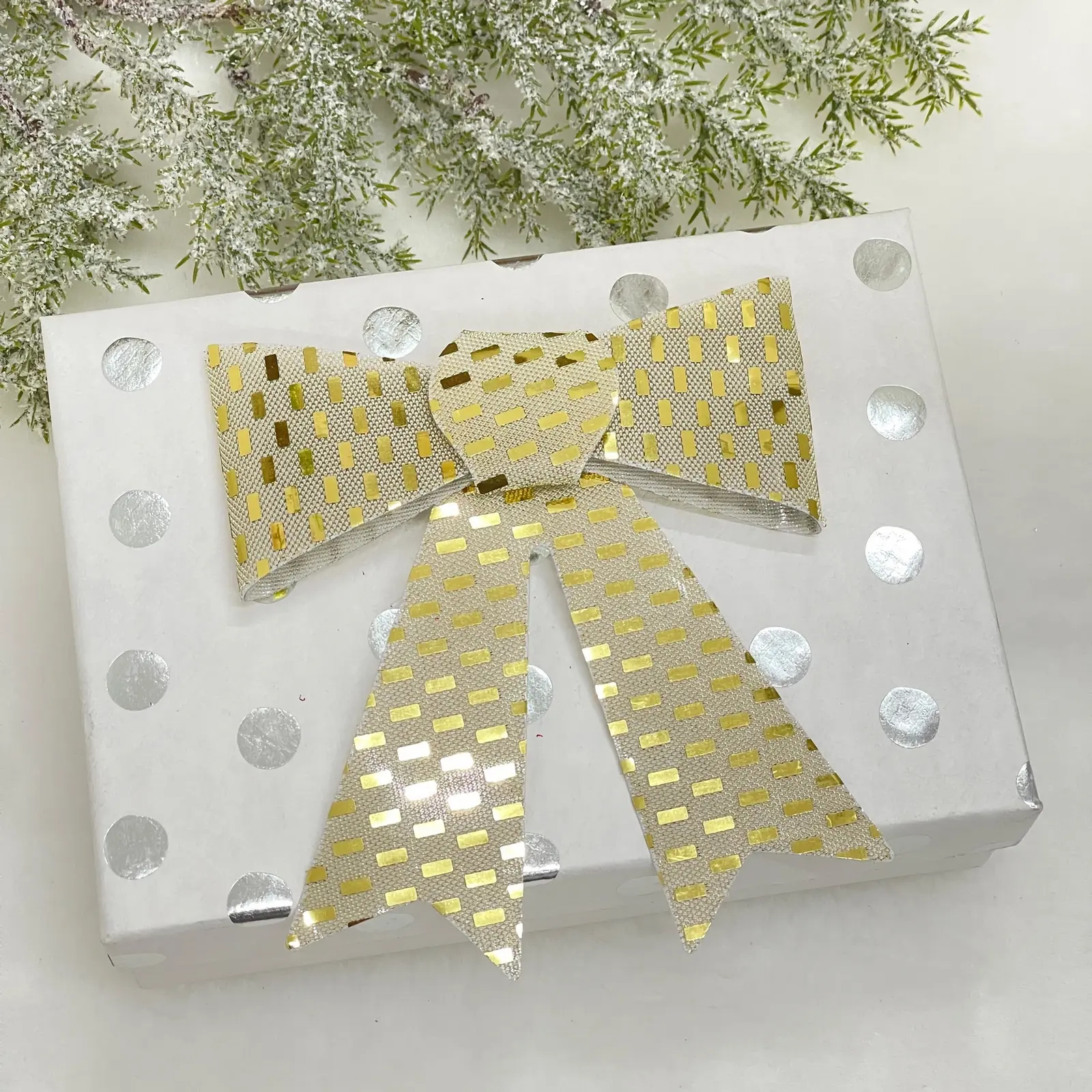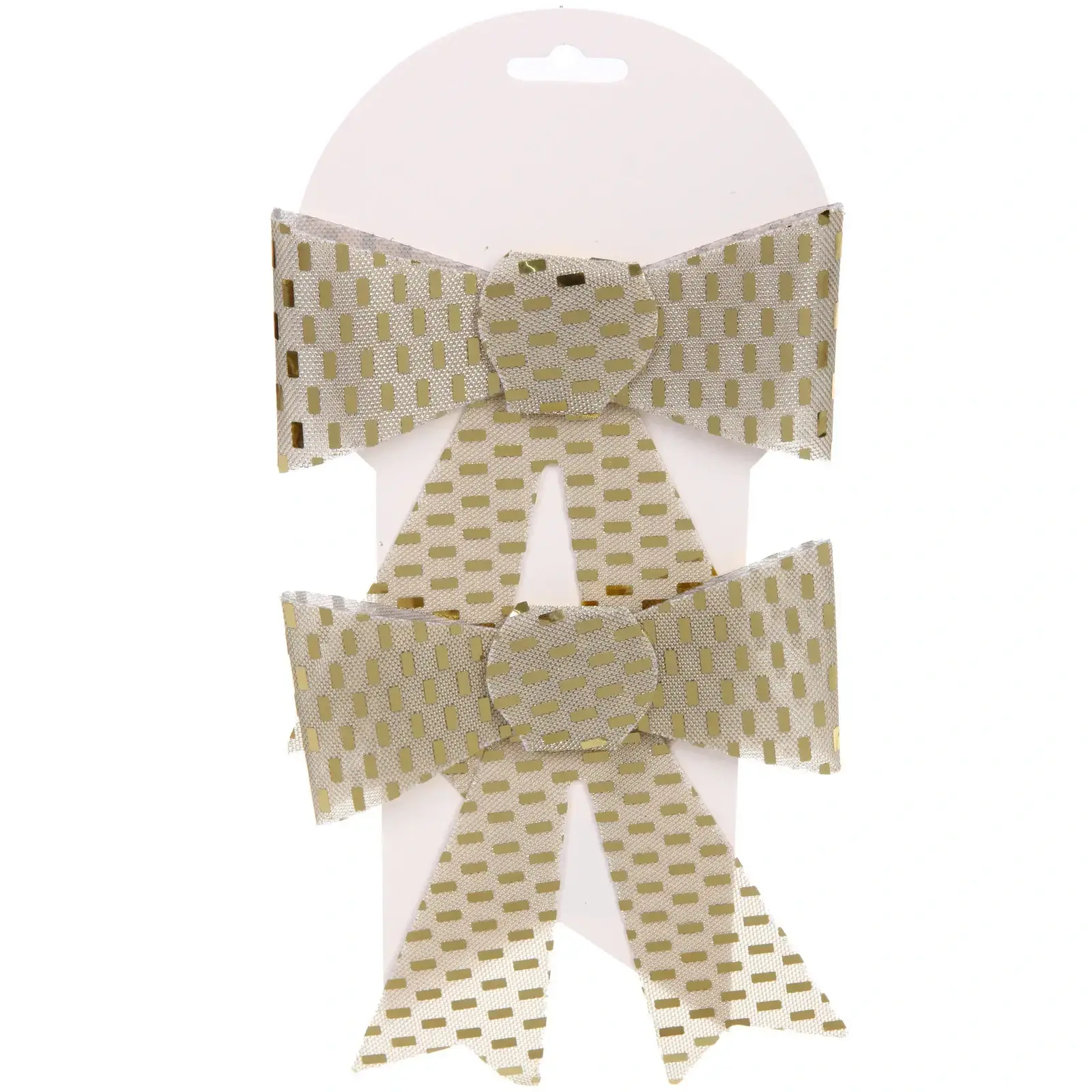 Каждый бант выполнен из качественного материала с золотистым узором, что придаёт им элегантный вид. Они легко крепятся благодаря продуманной конструкции, а их размеры 13х16 см делают их универсальными для различных применений. Не упустите возможность сделать ваш праздник особенным с бантами «Сияние»!