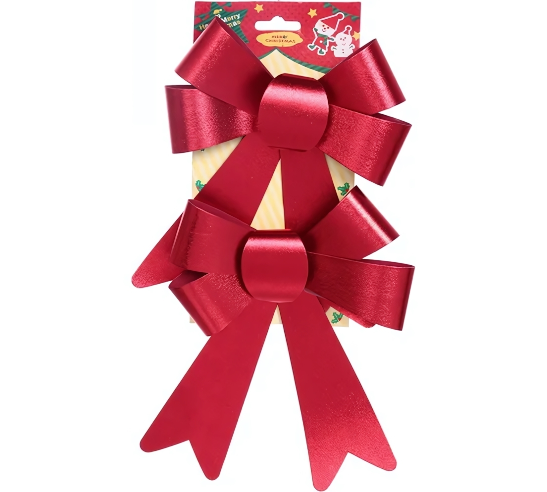 В упаковке вы найдете два больших банта, которые идеально подойдут для любых подарков. Размеры банта не указаны, но он выглядит крупным и заметным, что делает его отличным выбором для праздничного оформления. Упаковка оформлена в рождественском стиле, что добавляет дополнительный шарм.