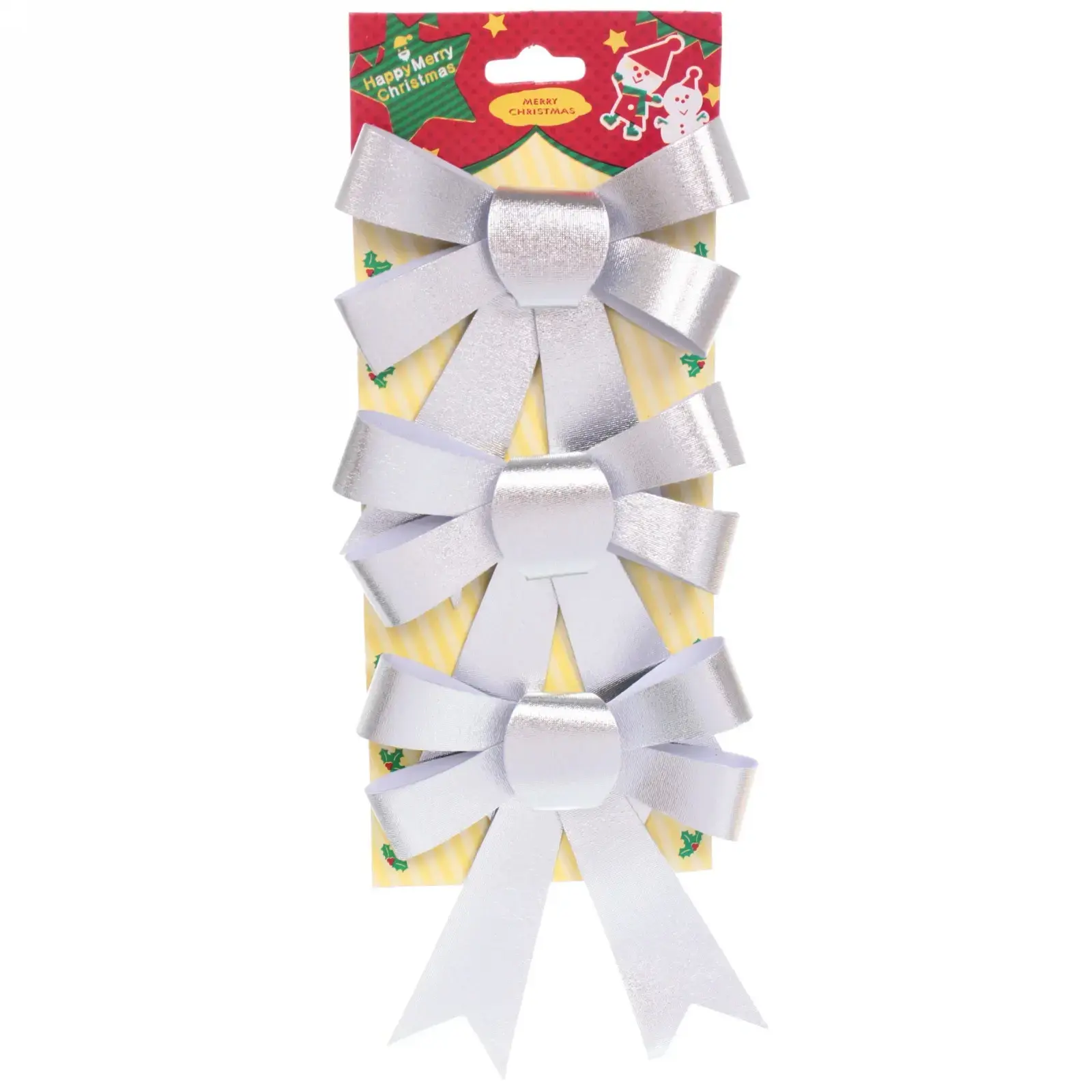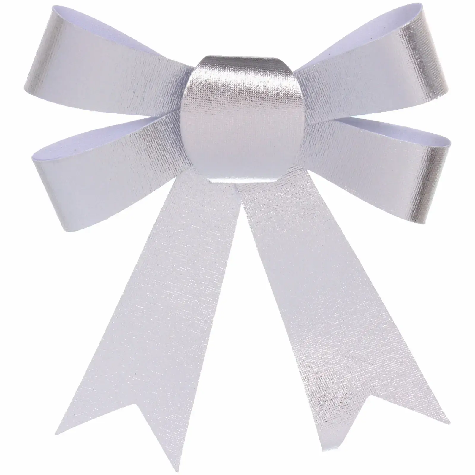 Каждый набор состоит из трех бантов, выполненных из прочного и блестящего ПВХ, что обеспечивает долговечность и привлекательный внешний вид. Серебристый цвет бантов легко сочетается с другими элементами декора, добавляя элегантности и стиля. Эти банты не только красивы, но и практичны, так как их можно использовать многократно, сохраняя первоначальный вид.