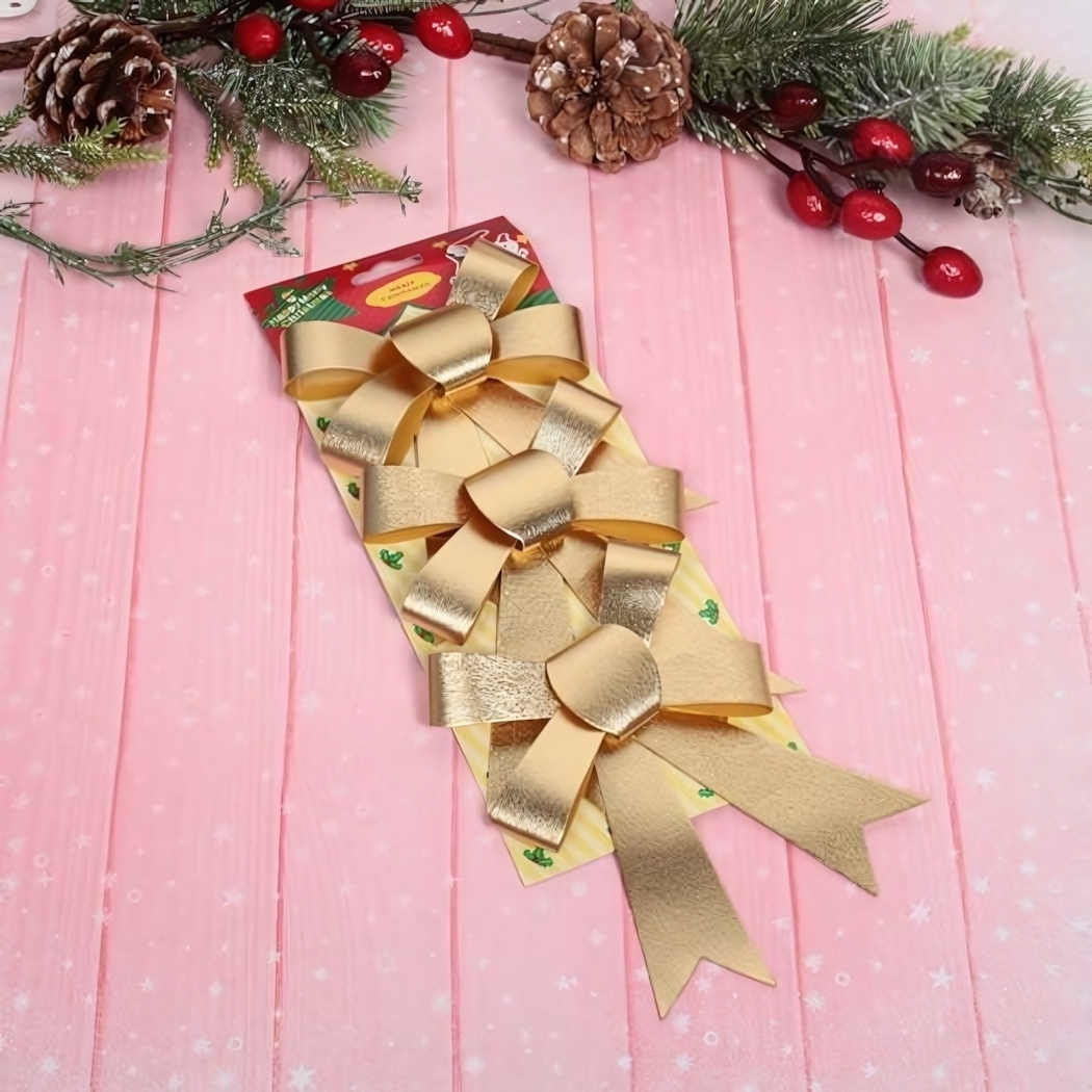 Каждый бант выполнен из качественных материалов, что обеспечивает их долговечность и привлекательный внешний вид. Размеры бантов не указаны, но они стандартные для подарочной упаковки, что делает их удобными в использовании. Упаковка оформлена в праздничном стиле, что дополнительно подчеркивает их предназначение.