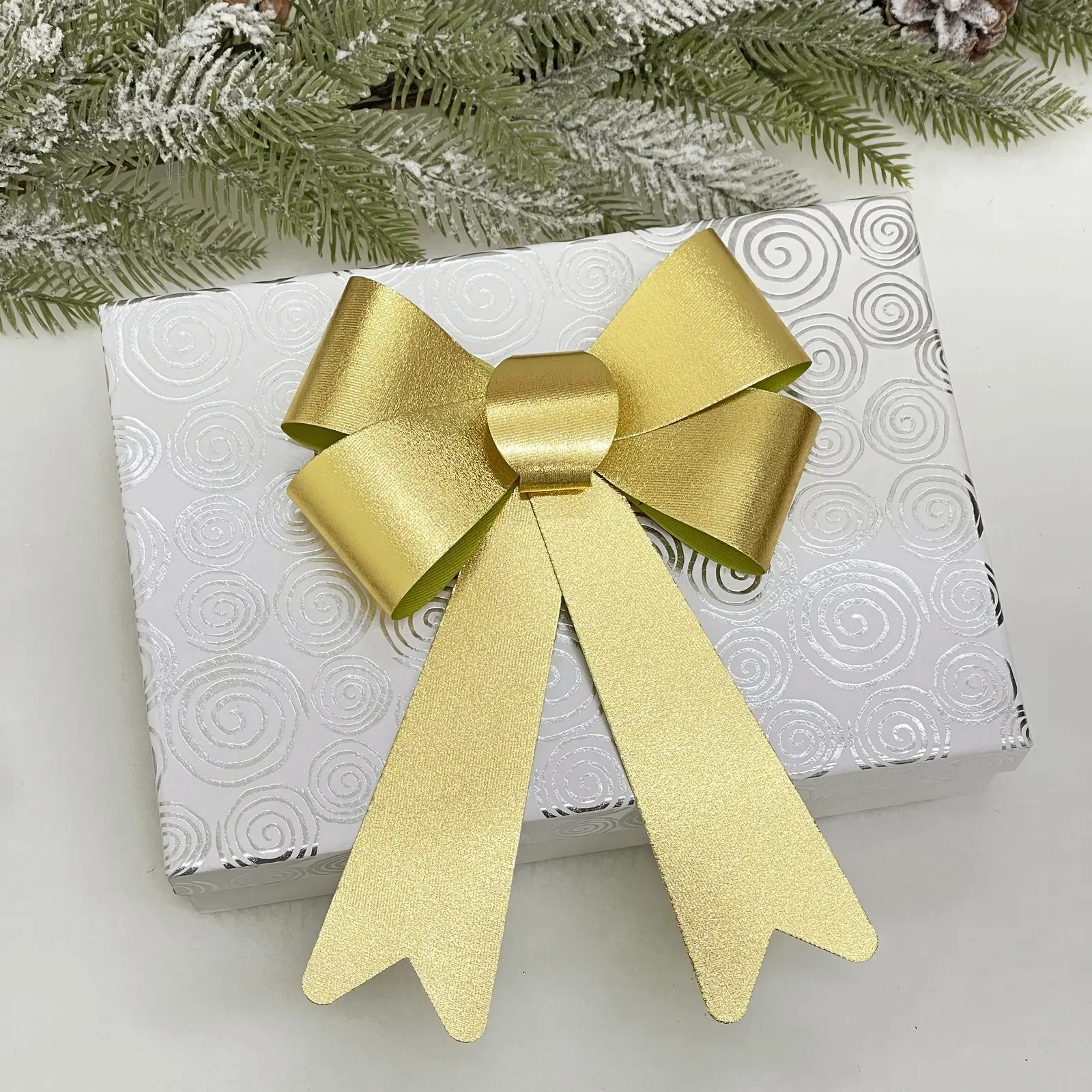 Выбирая бант «Сказочные блики», вы получаете не только красивое украшение, но и практичное решение для оформления. Его золотистый цвет и блестящая текстура создают эффектный контраст с зелеными ветвями ёлки, подчеркивая её красоту. Кроме того, бант легко комбинируется с другими украшениями, позволяя вам создать уникальный стиль.