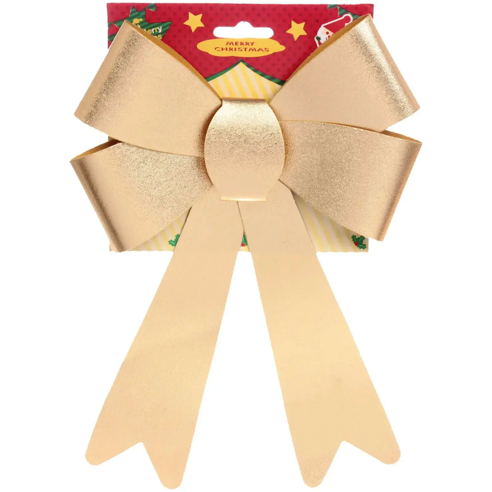 Этот великолепный золотой бант станет идеальным украшением для вашей ёлки, добавляя ей праздничного блеска и элегантности. Его блестящая поверхность и симметричная форма привлекут внимание и создадут атмосферу настоящего праздника. Бант выполнен из качественного ПВХ, что обеспечивает его долговечность и устойчивость к различным условиям.