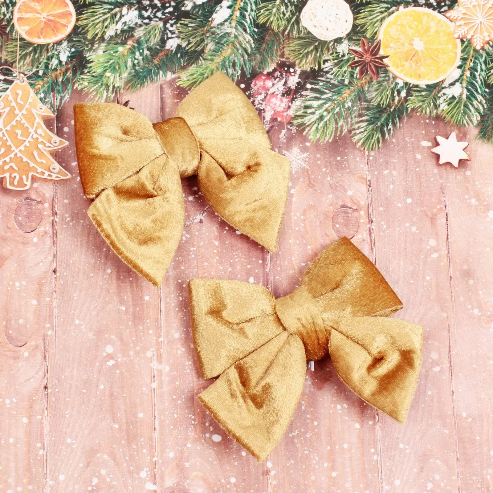 Почему стоит выбрать именно эти банты? Во-первых, их уникальный велюровый стиль и золотистый цвет делают их универсальными для любого праздничного оформления. Во-вторых, они выполнены из качественного текстиля, что обеспечивает долговечность и возможность многократного использования. Эти банты не только красивы, но и практичны, что делает их отличным выбором для любого праздника.