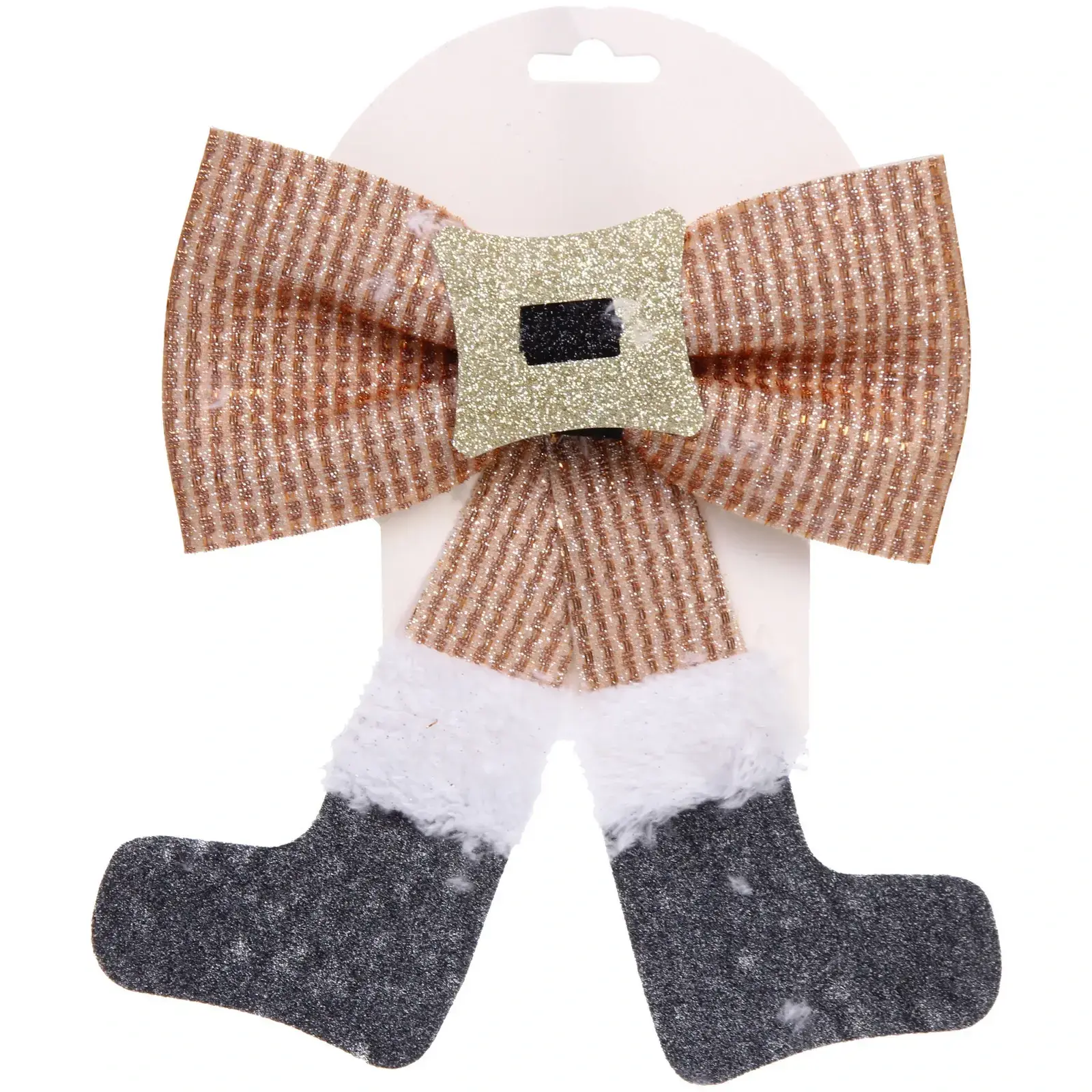 Бант изготовлен из качественного текстиля, что обеспечивает его долговечность и устойчивость к повреждениям. Его размеры 18х20 см делают его универсальным для различных стилей оформления. Не упустите возможность сделать ваш Новый год незабываемым с помощью этого великолепного банта!