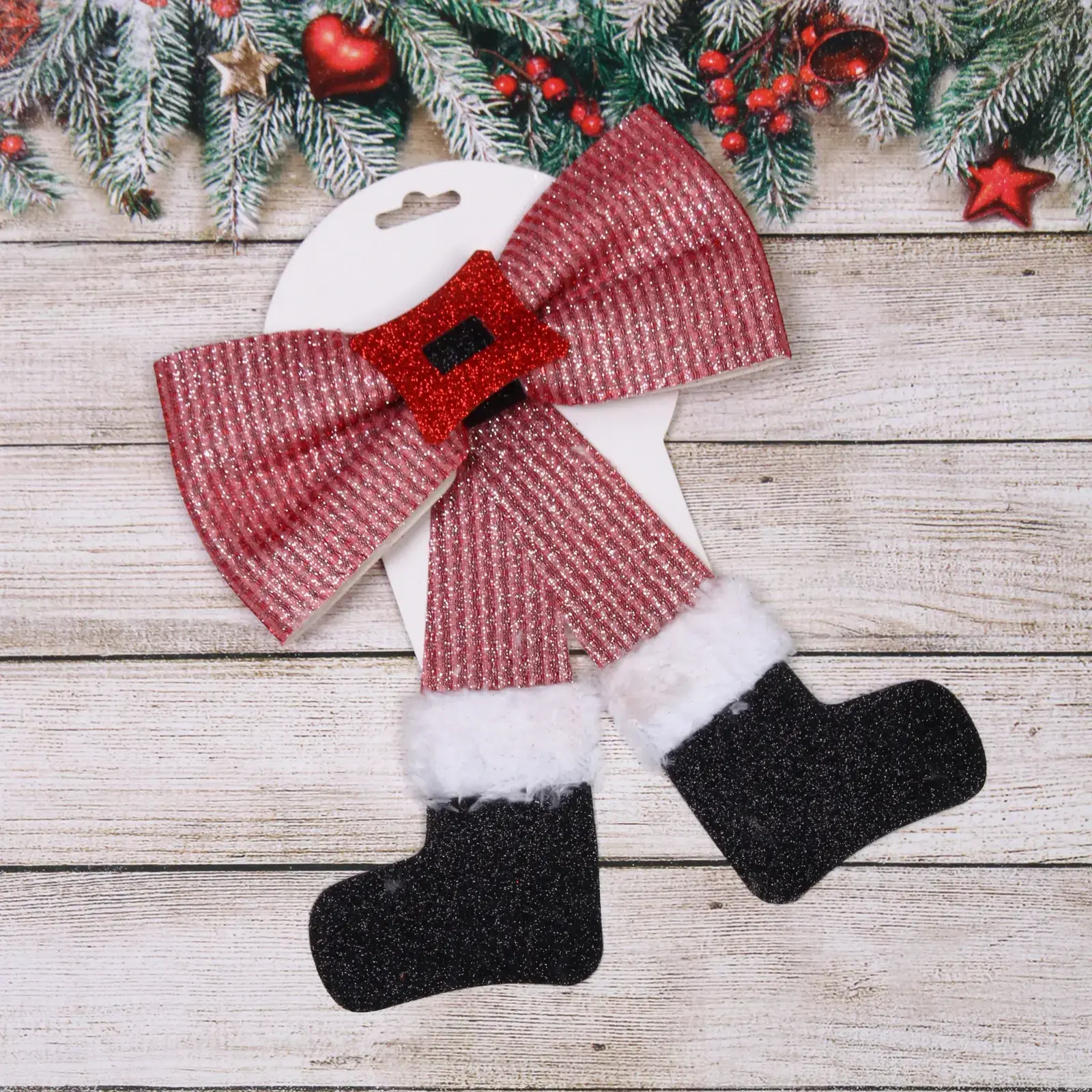 Бант размером 20*24 см выполнен из качественного текстиля, что обеспечивает долговечность и устойчивость к повреждениям. Он идеально подходит для украшения ёлок, дверей, стен и других праздничных атрибутов. Благодаря своему универсальному дизайну, бант будет уместен как в классическом, так и в современном интерьере.