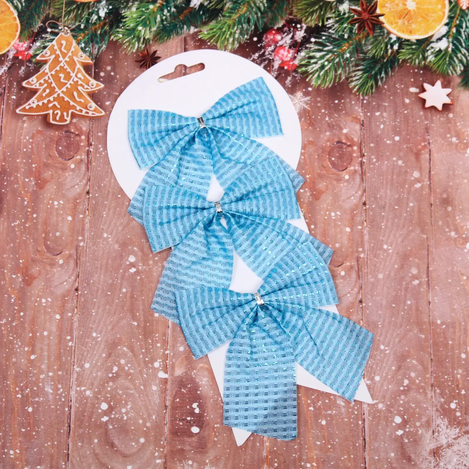 Каждый бант выполнен из текстильного материала, что обеспечивает его прочность и устойчивость к повреждениям. Размеры бантов составляют 11*12 см, что делает их достаточно заметными, но не слишком громоздкими. Они идеально подойдут для создания гармоничного новогоднего декора.