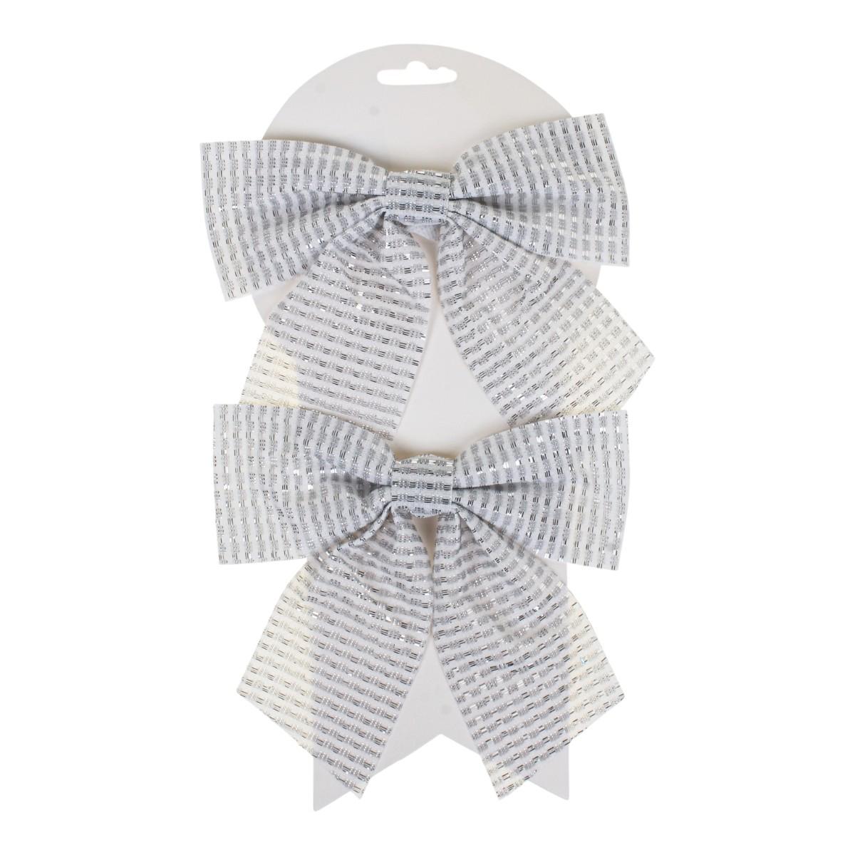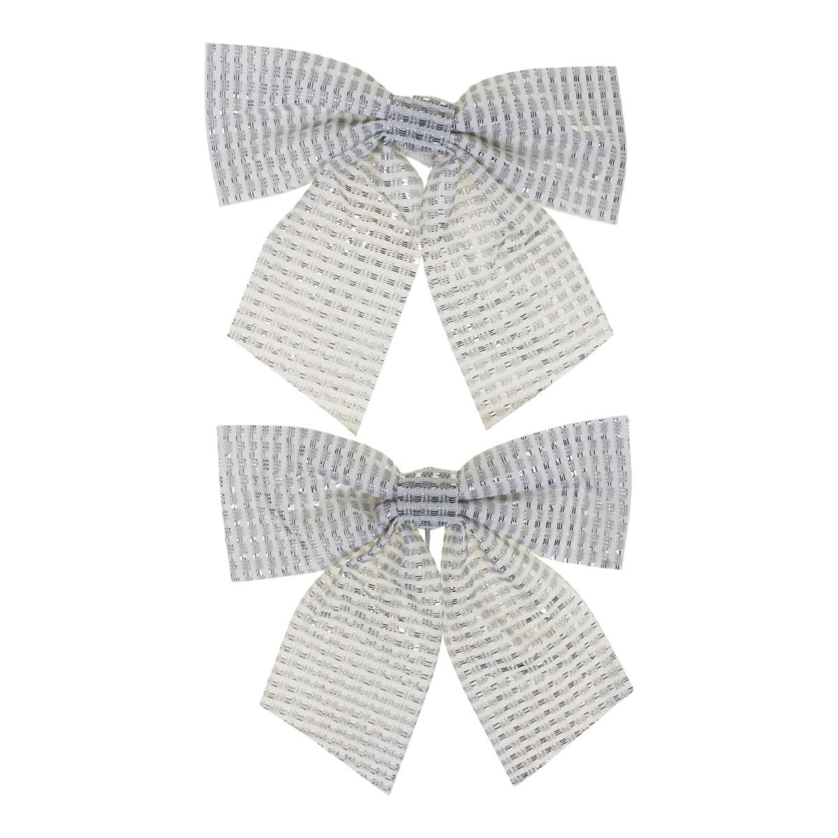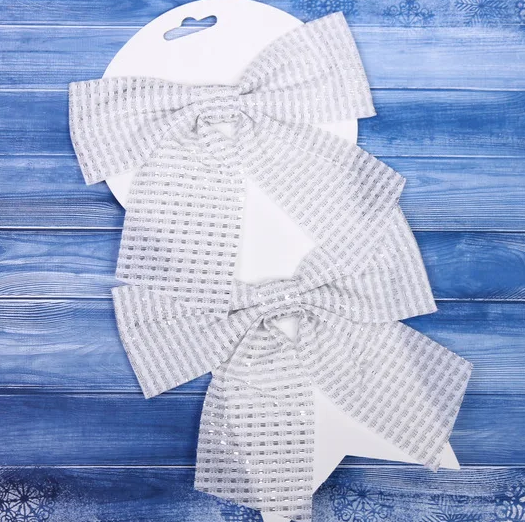 Создайте атмосферу праздничного уюта и нарядности с декоративным бантом "Волшебство". Набор из двух бантов в серебристом цвете станет стильным акцентом на вашей ёлке или в любом новогоднем оформлении. Мягкий блеск текстильной ленты отражает свет гирлянд, добавляя интерьеру тепла и роскоши.