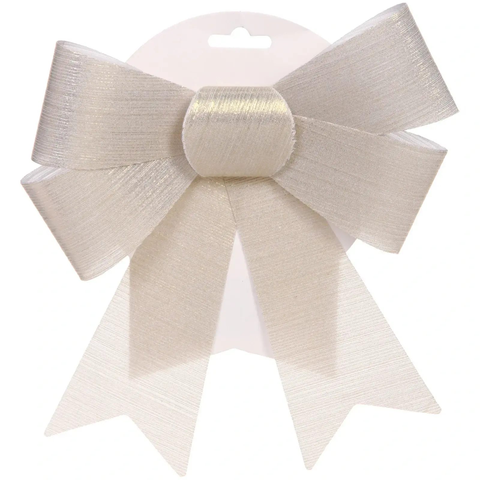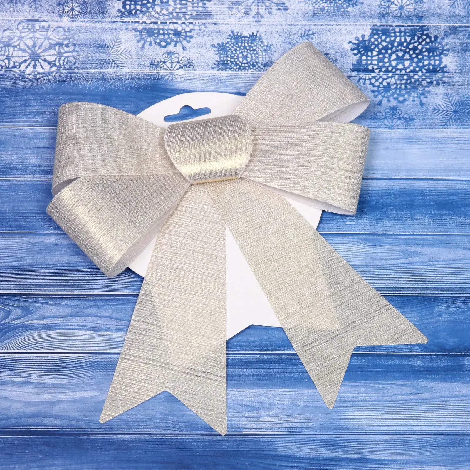 Этот бант выделяется не только своим привлекательным внешним видом, но и качеством материалов. Изготовленный из ПВХ, он обладает долговечностью и устойчивостью к повреждениям. Перламутровый блеск придаёт ему особую изысканность, а текстурированная поверхность добавляет объём и интересный визуальный эффект. Вы можете быть уверены, что этот бант прослужит вам не один праздник.