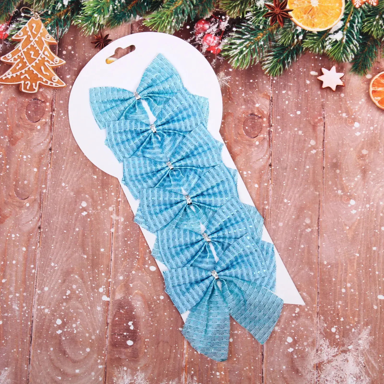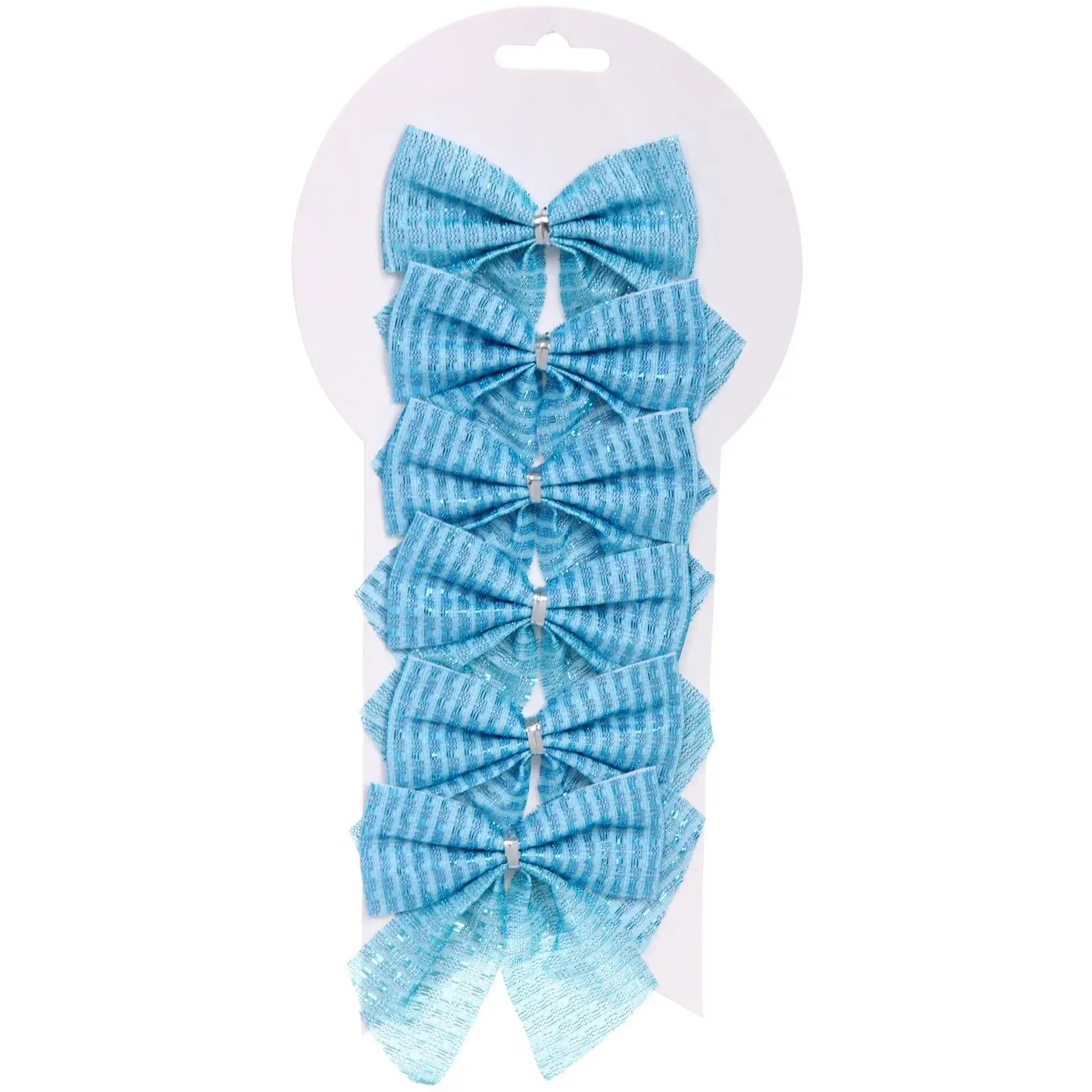 Банты подходят для украшения ёлок, подарков, а также могут использоваться в качестве декора для праздничных мероприятий. Они легко крепятся и снимаются, что делает их удобными в использовании. Набор состоит из шести бантиков, что позволяет вам украсить не только ёлку, но и другие элементы интерьера.