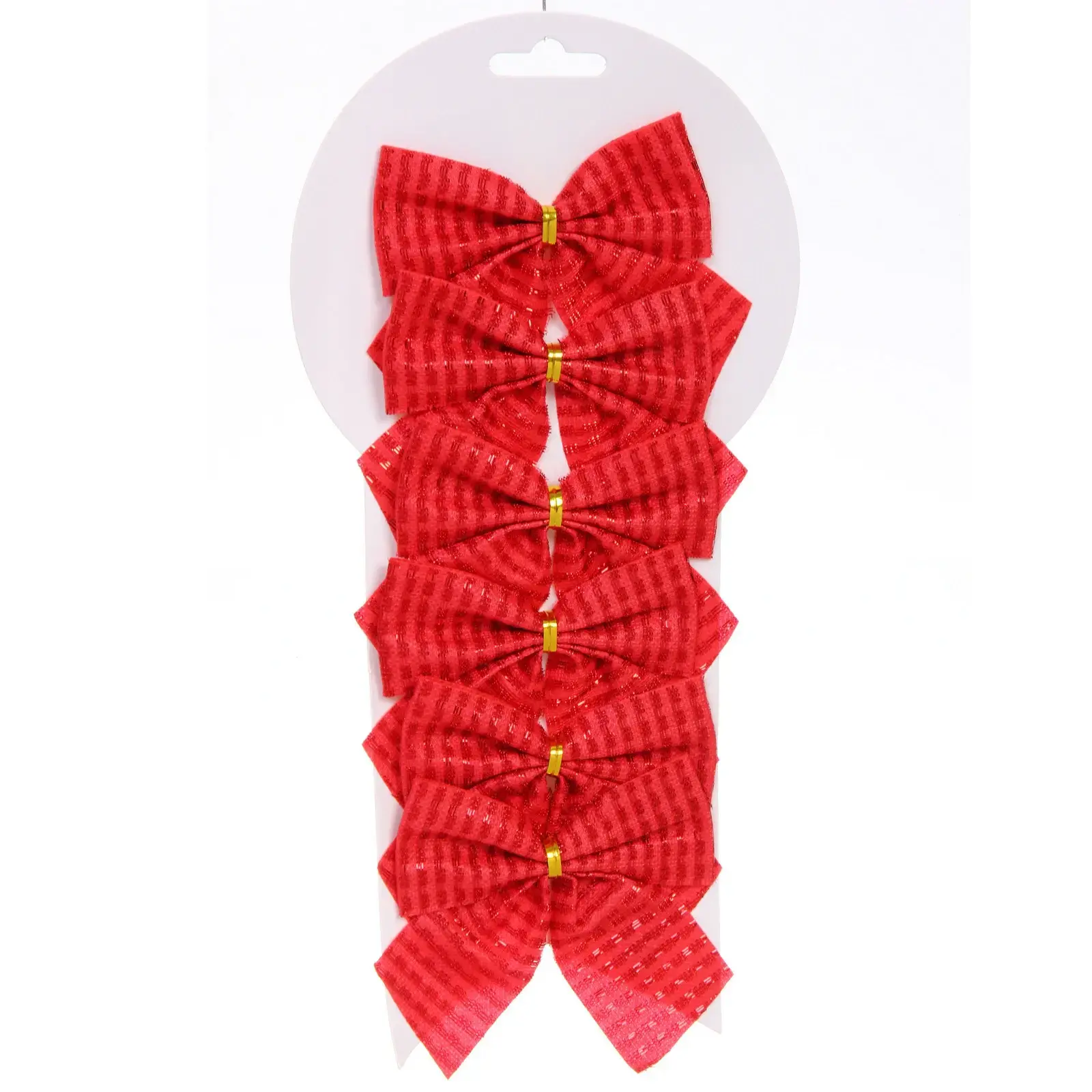 Размер каждого банта составляет 8,5*9 см, что делает их достаточно крупными для заметного декора. В наборе вы получаете 6 штук, что позволяет использовать их в различных комбинациях и для разных целей. Эти банты легко крепятся и могут быть использованы как для украшения ёлки, так и для оформления подарков.